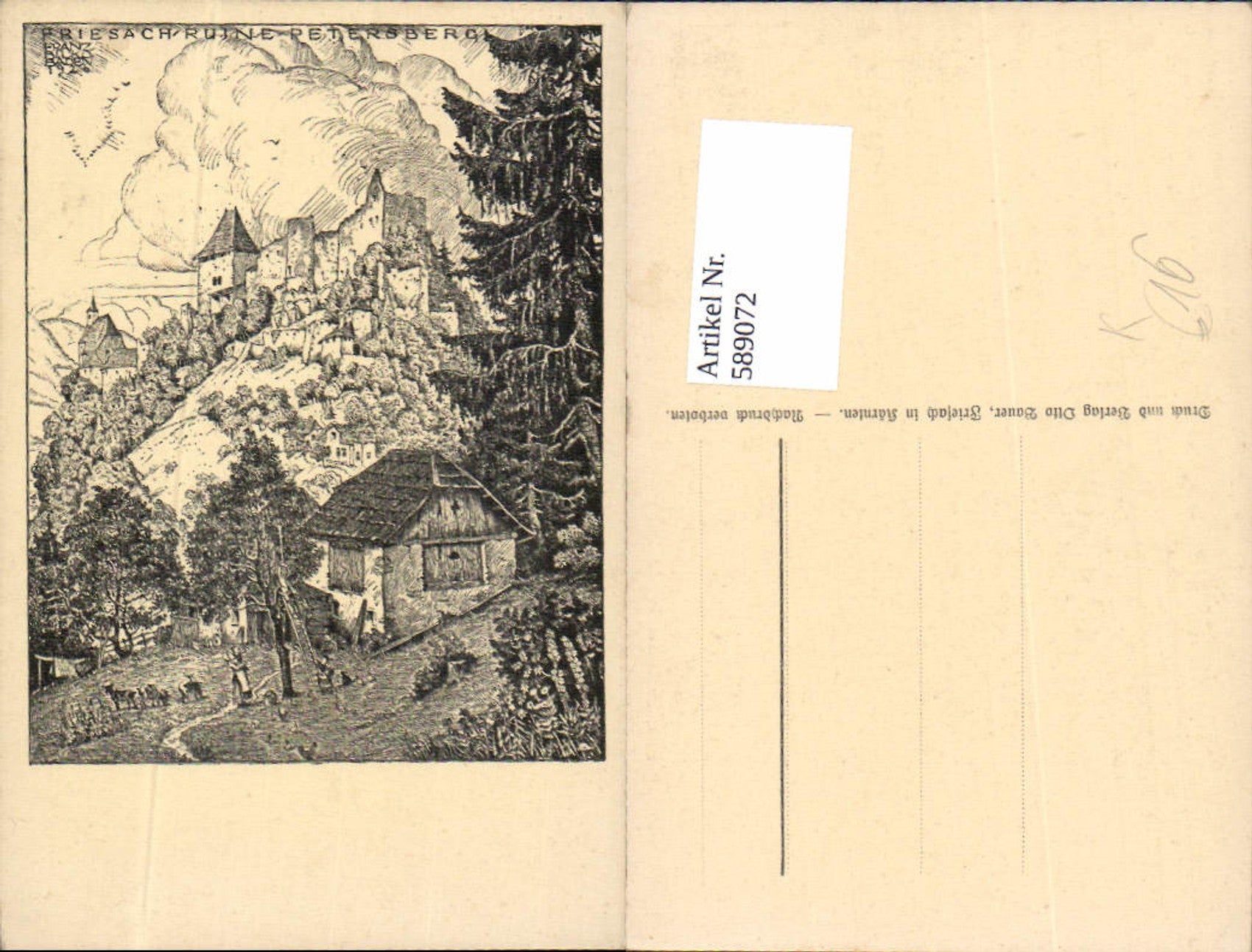 589072,Künstler AK Friesach in Kärnten Ruine Petersberg Lavant
