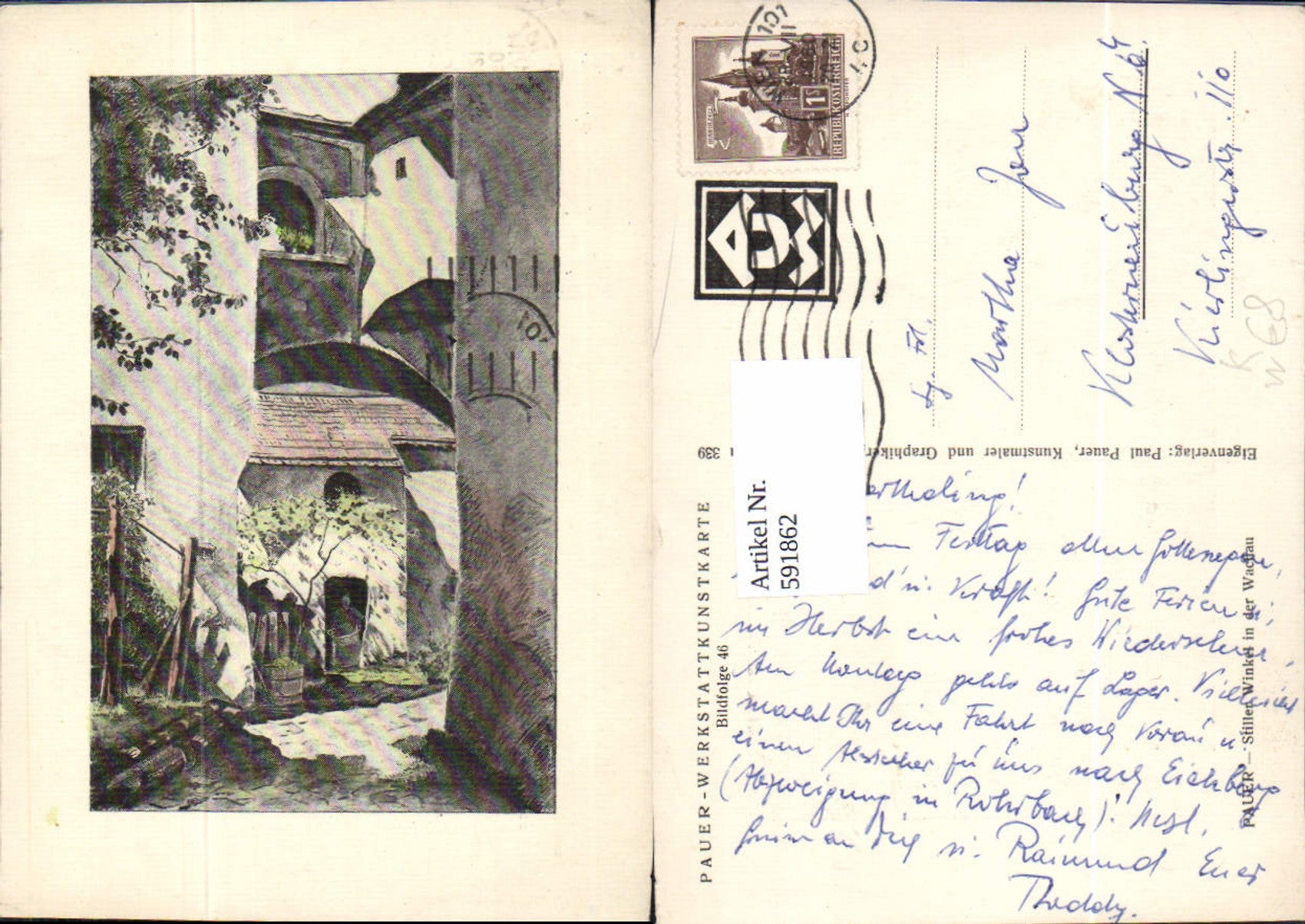 591862,Künstler AK Pauer Werkstattkunstkarte 46 Wachau Dürnstein Stiller Winkel