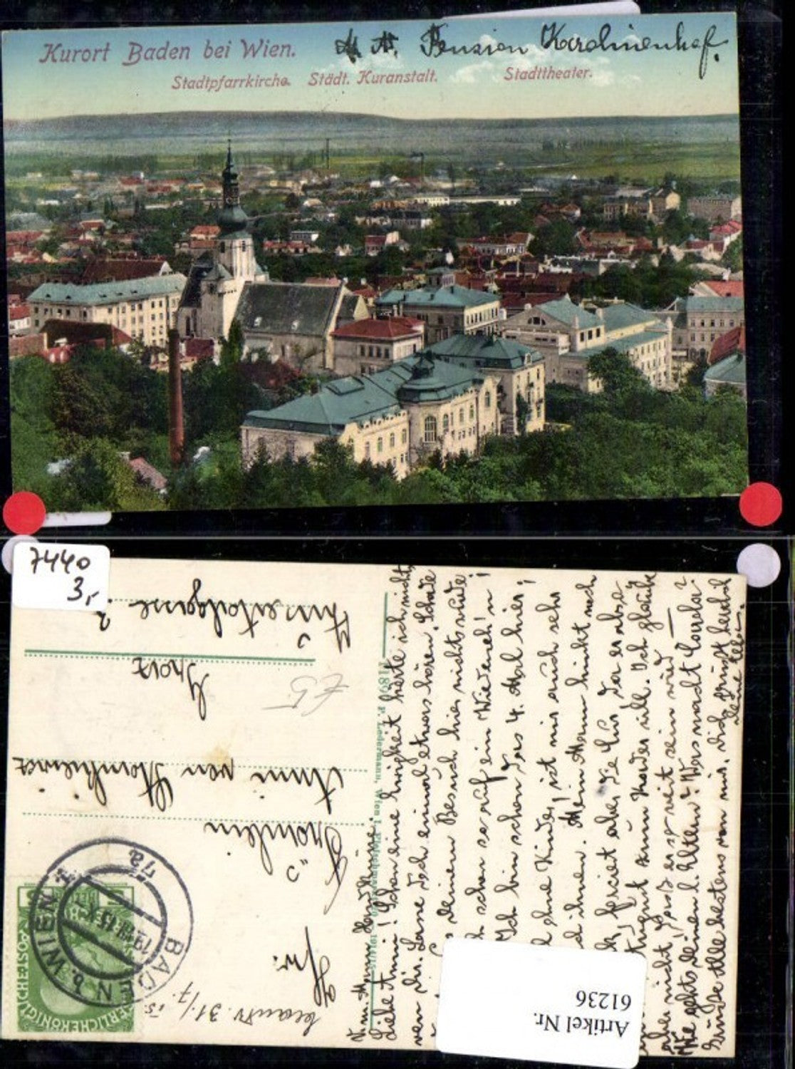 61236,Baden b. Wien Stadtpfarrkirche Kuranstalt Stadtheather 1915