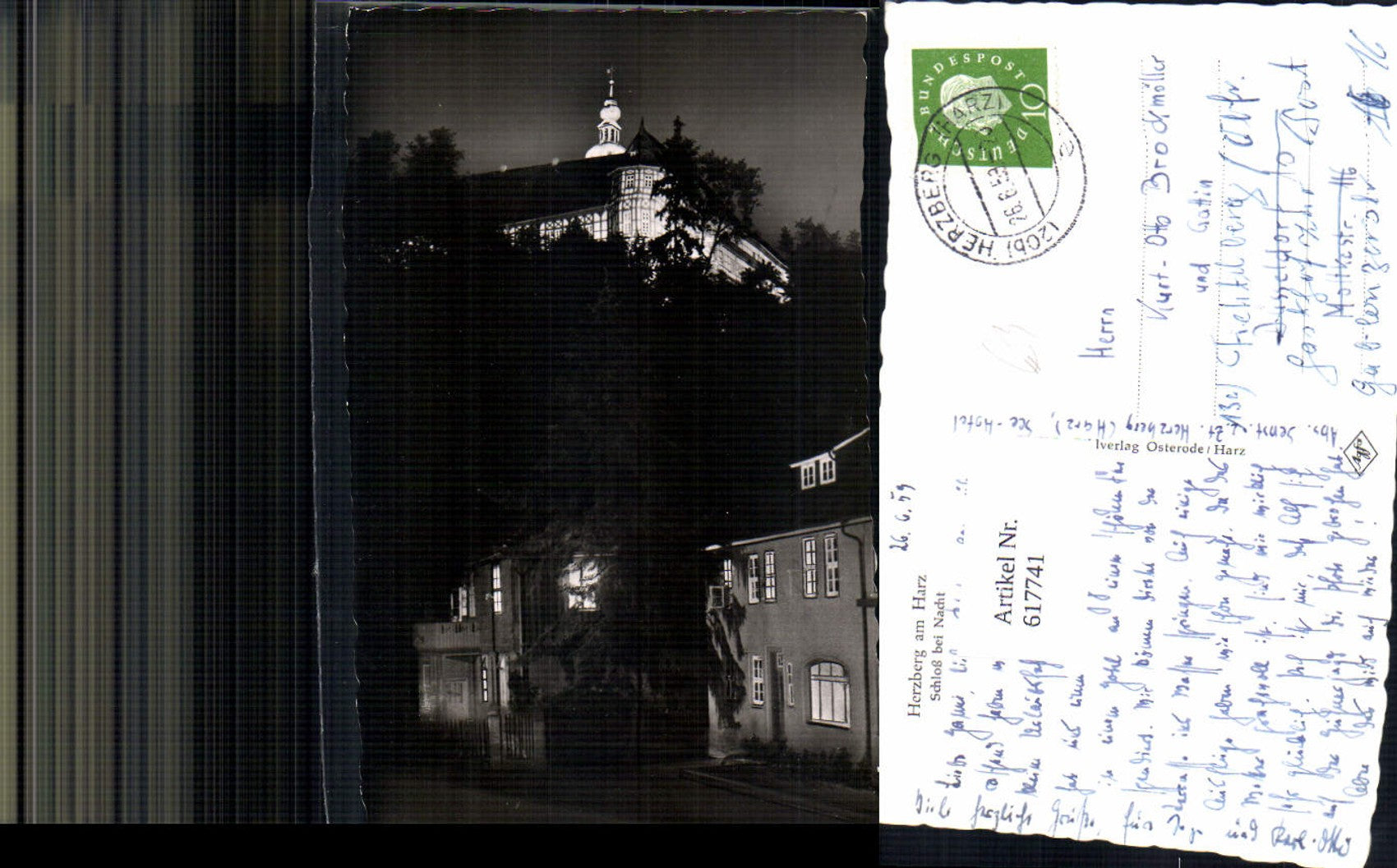 617741,Foto Ak Herzberg a. Harz Schloss b. Nacht
