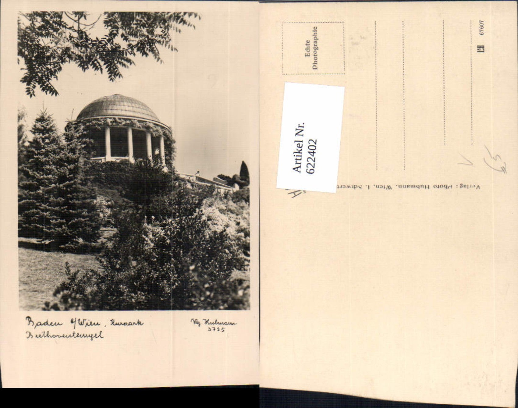 622402,Foto Ak Baden b. Wien Kurpark Beethoventempel Tempel pub Hubmann 3725
