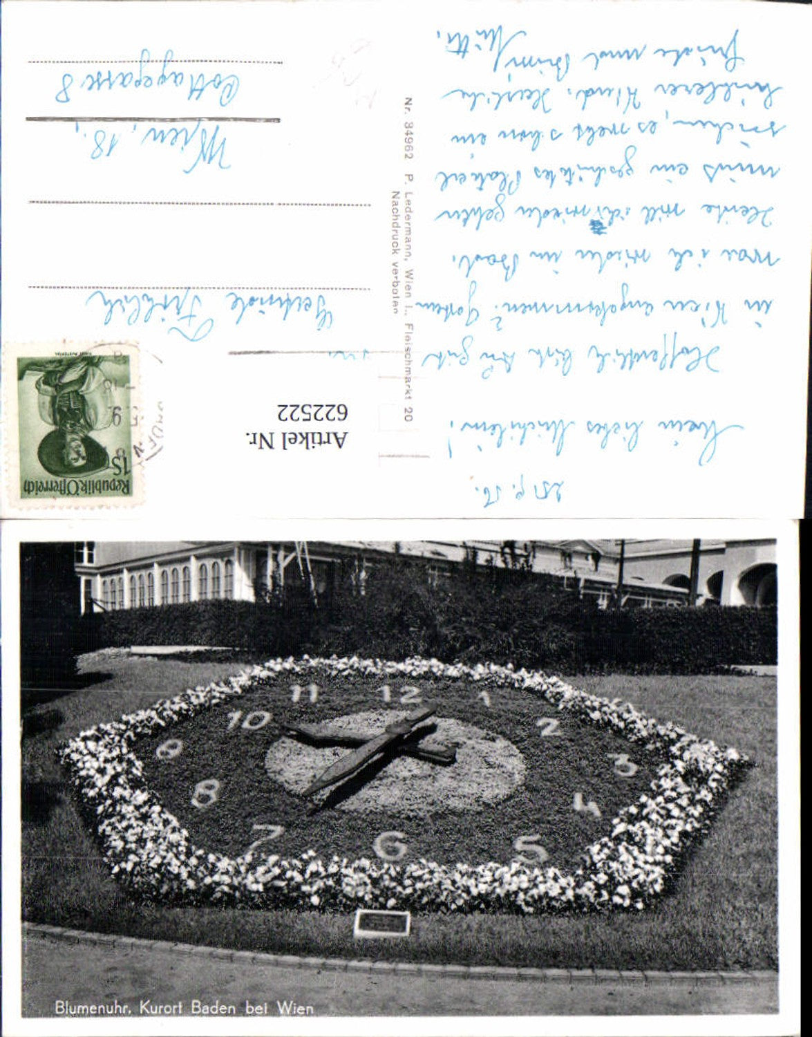 622522,Foto Ak Baden b. Wien Blumenuhr Blumen