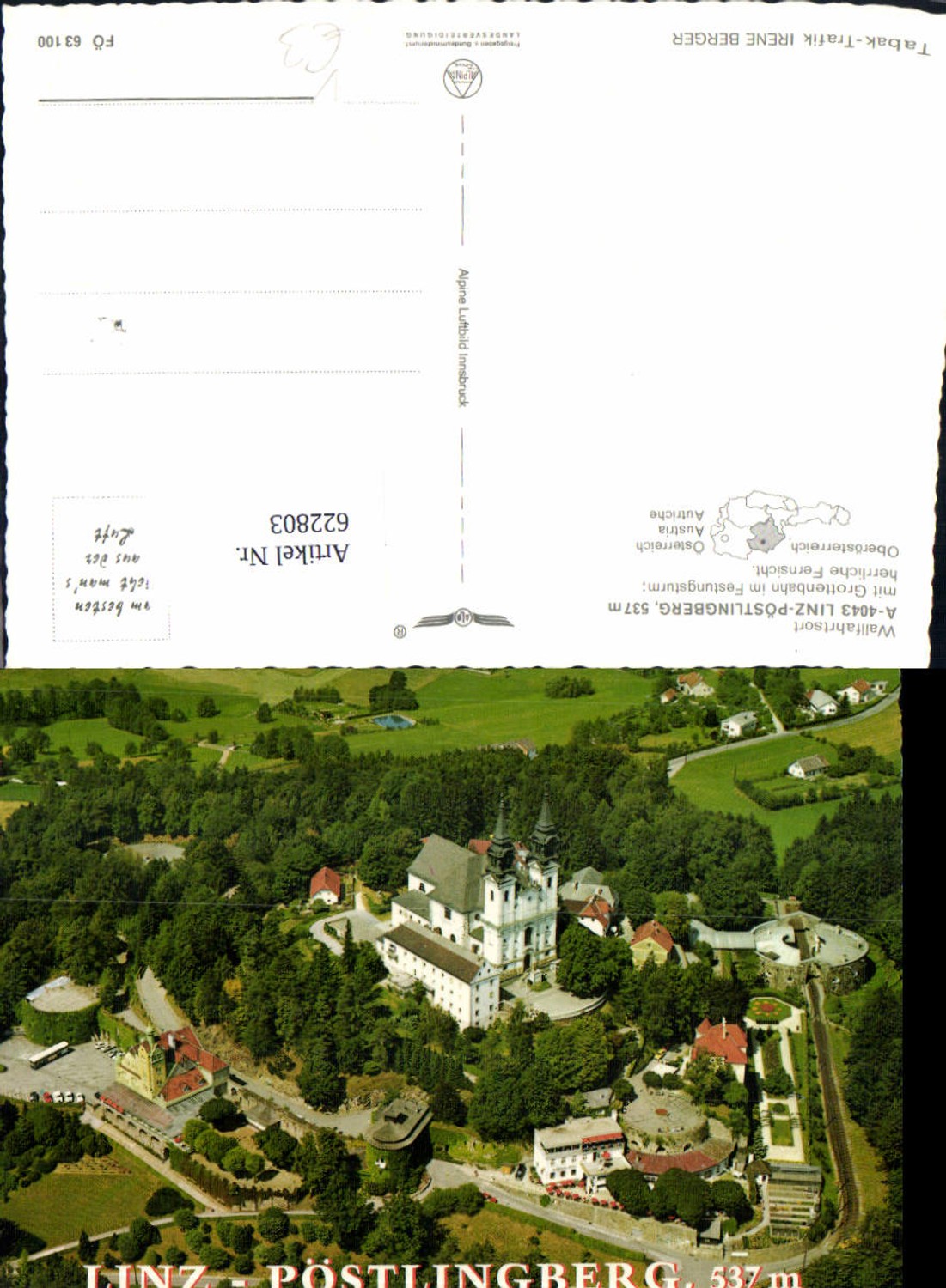 622803,Linz a. d. Donau Wallfahrtsort Pöstlingberg Grottenbahn m. Festungsturm pub Alpine Luftbild FÖ 63100