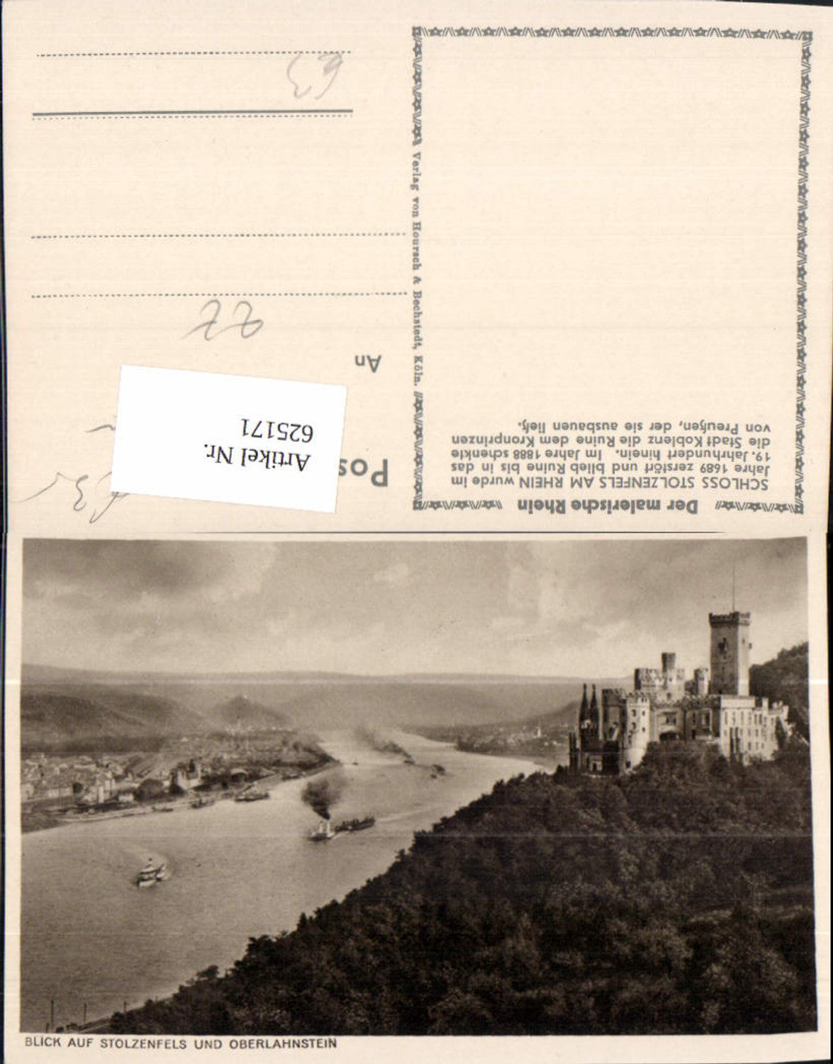 625171,Blick auf Schloss Stolzenfels u. Oberlahnstein Schiffe Dampfer