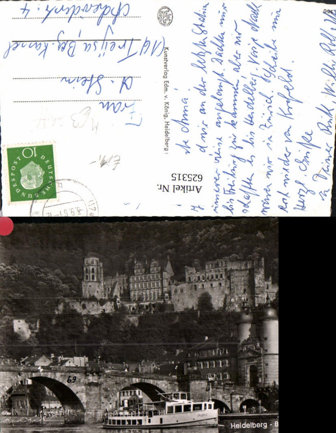 625315,Foto Ak Heidelberg Brücke u. Schloss Schiff Bus