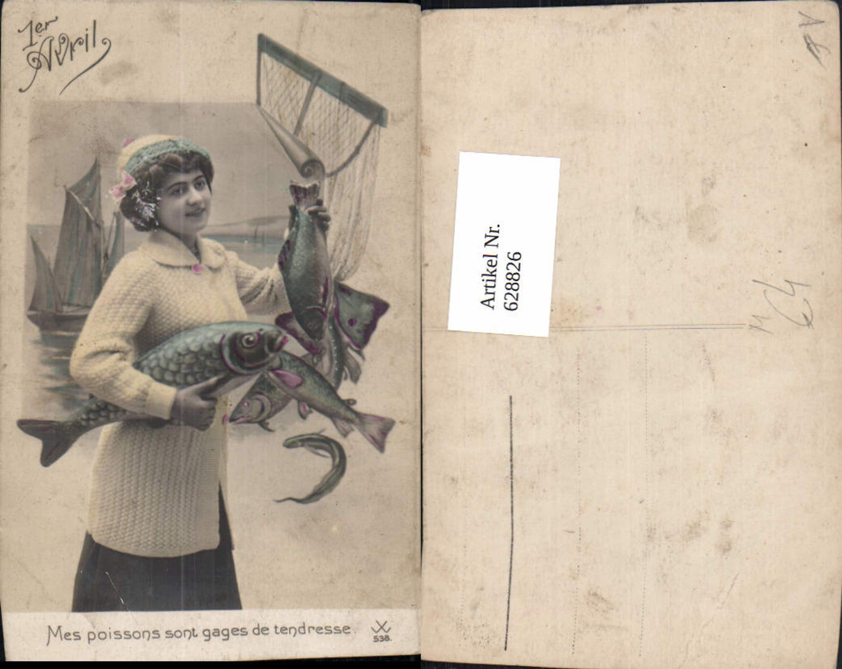 628826,1er April Frau m. Fisch Fischernetz Segelboot Spruch France