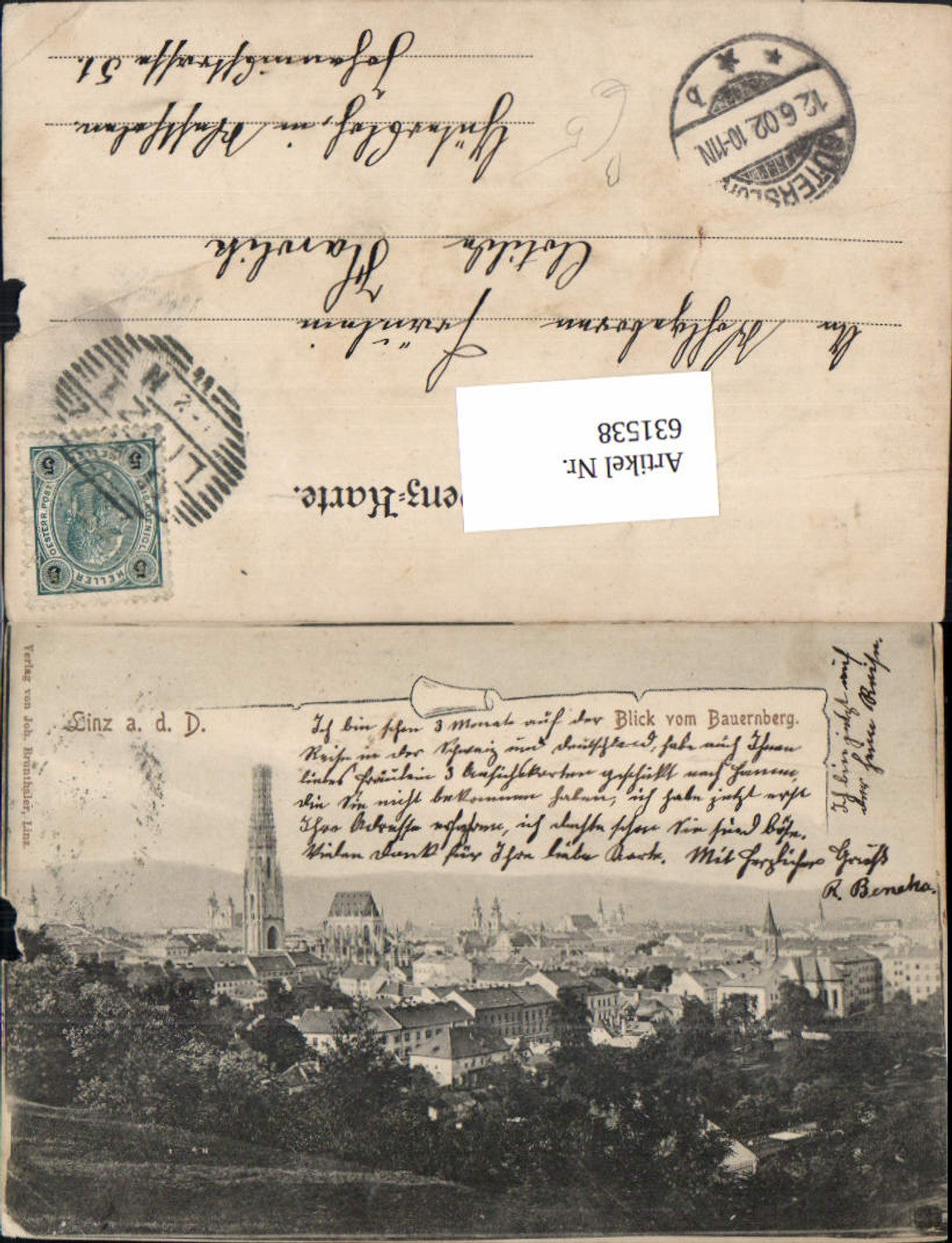 631538,Linz an der Donau vom Bauernberg 1901