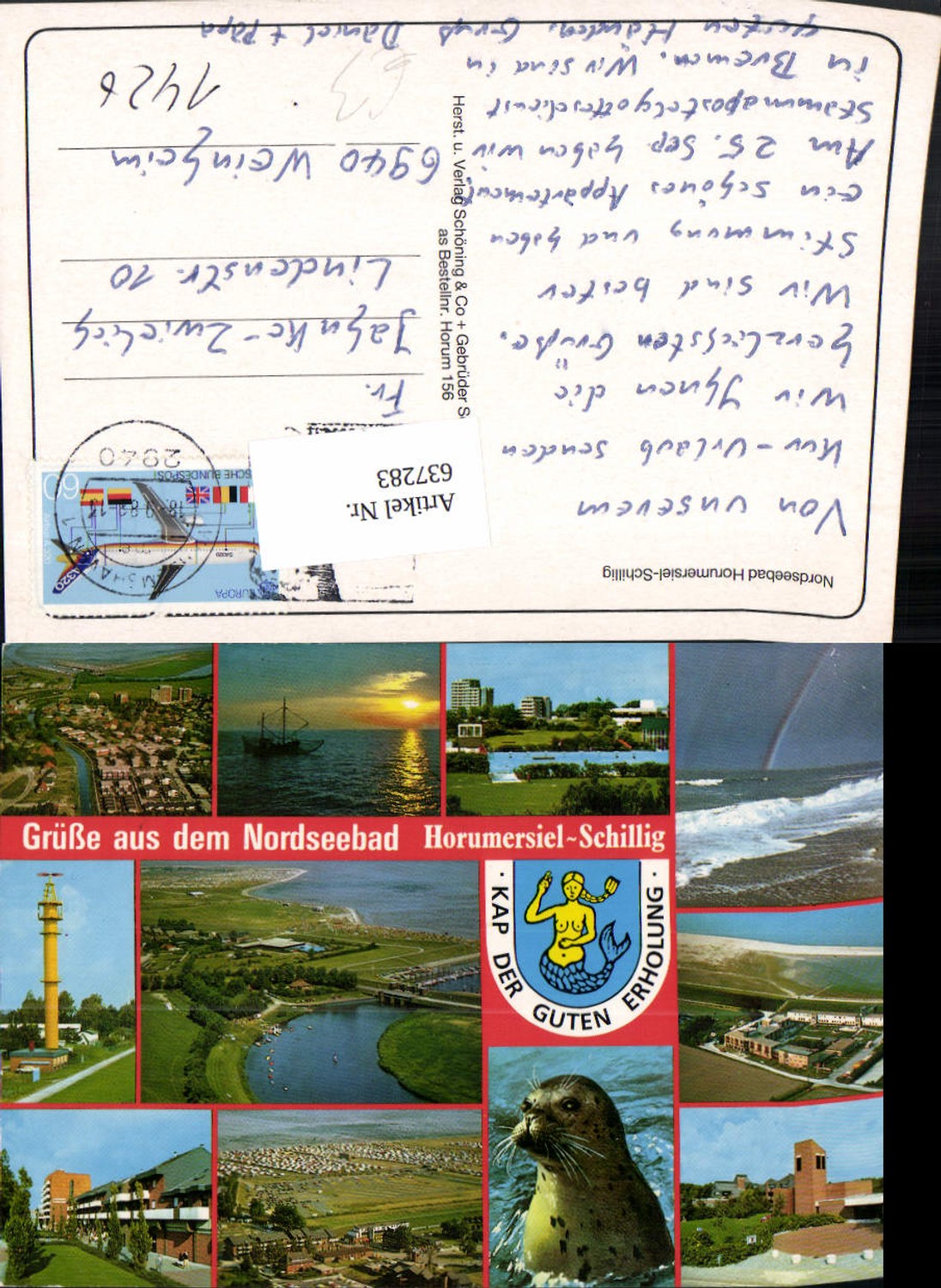 637283,Mehrbild Ak Wangerland Nordseebad Horumersiel-Schillig Robbe Strand Segelschiff