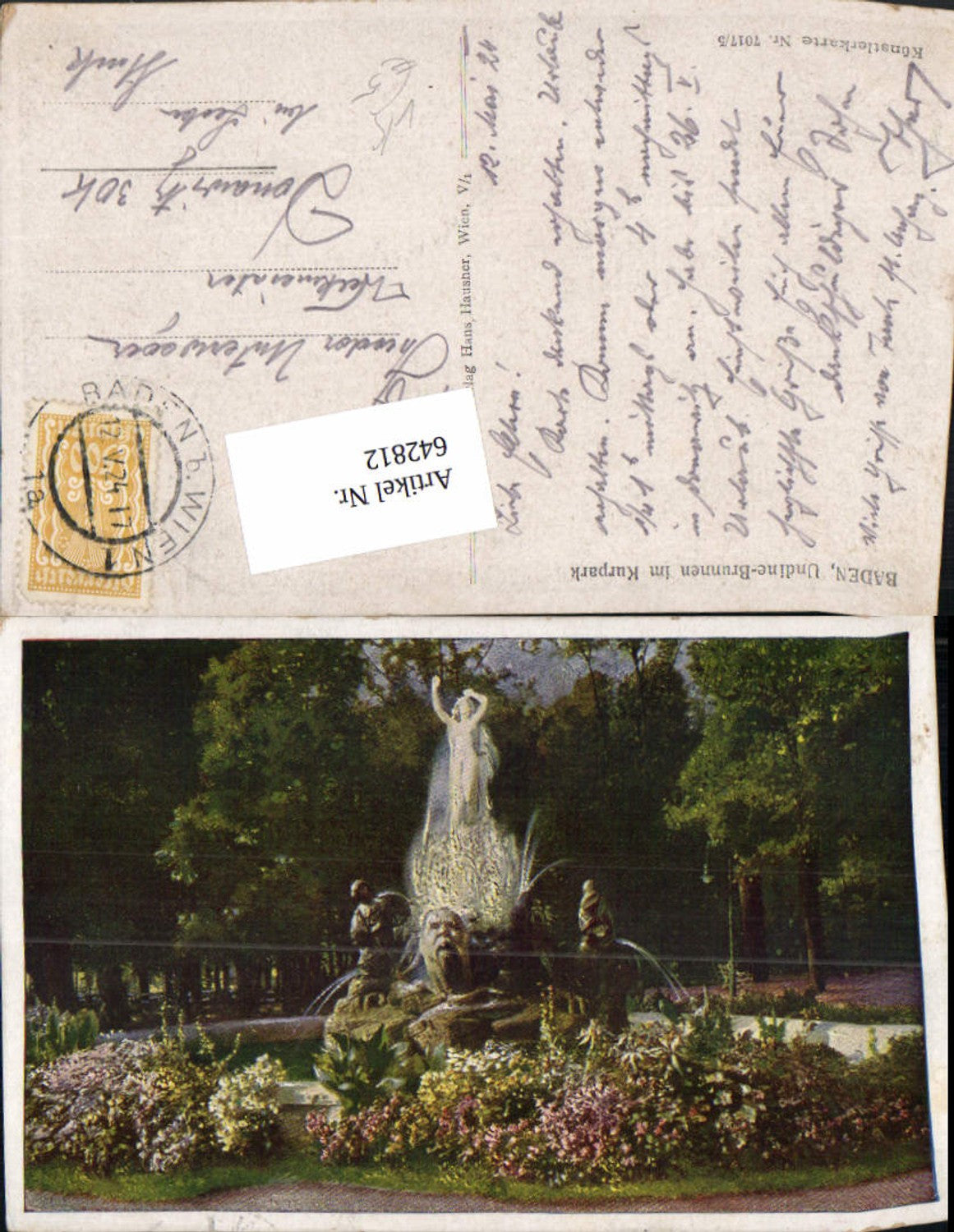 642812,Künstler AK Baden bei Wien Undine Brunnen Kurpark pub Hausner 7017/5