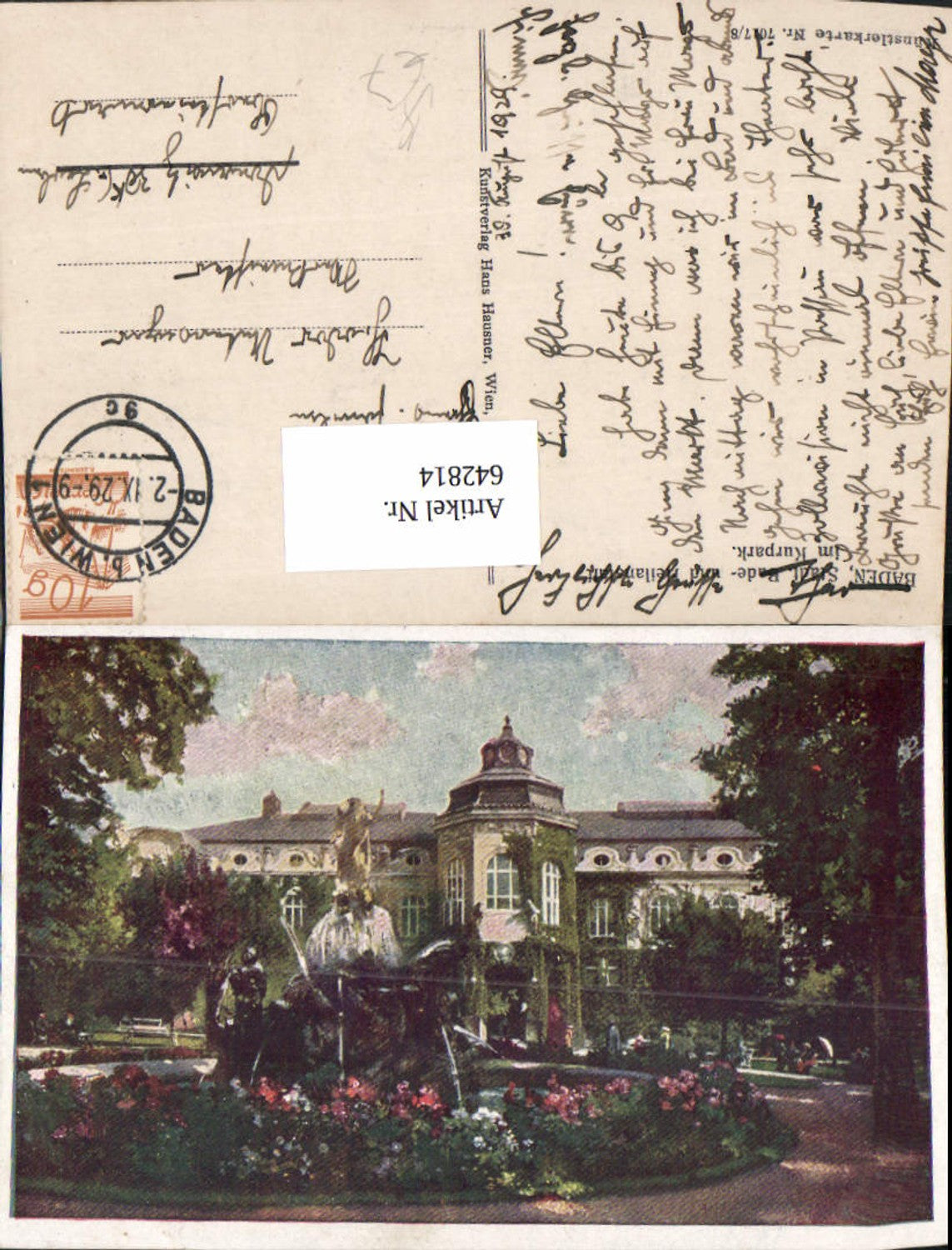 642814,Künstler AK Baden bei Wien Badeanstalt Kurpark pub Hausner 7017/8