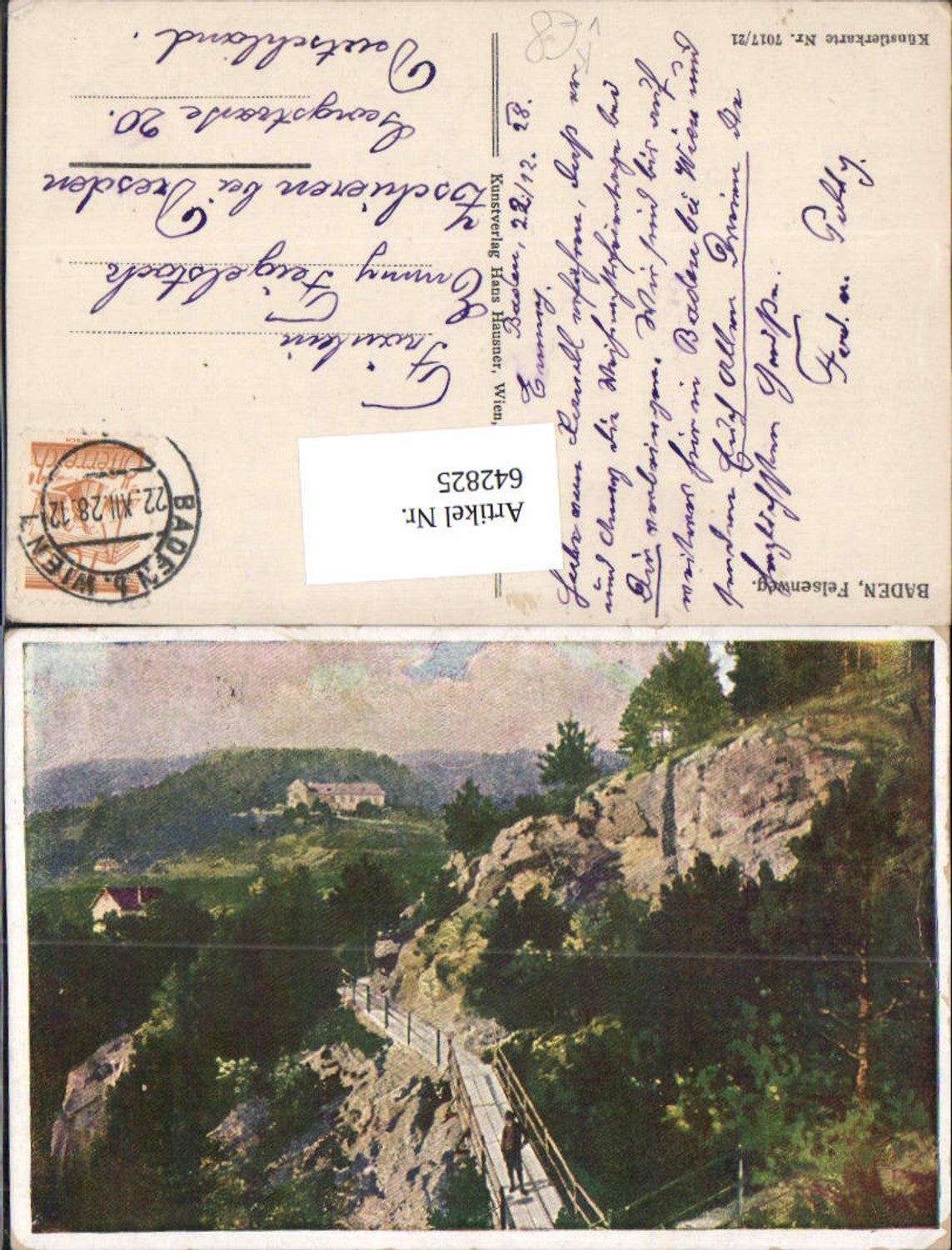 642825,Künstler AK Baden bei Wien Felsenweg pub Hausner 7017/21