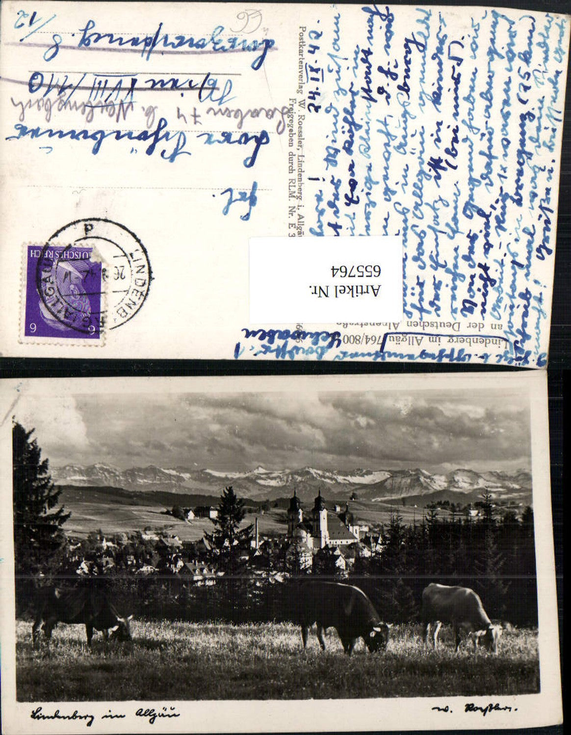 655764,Foto Ak Lindenberg im Allgäu Ansicht m. Kühe Rinder im Vordergrund