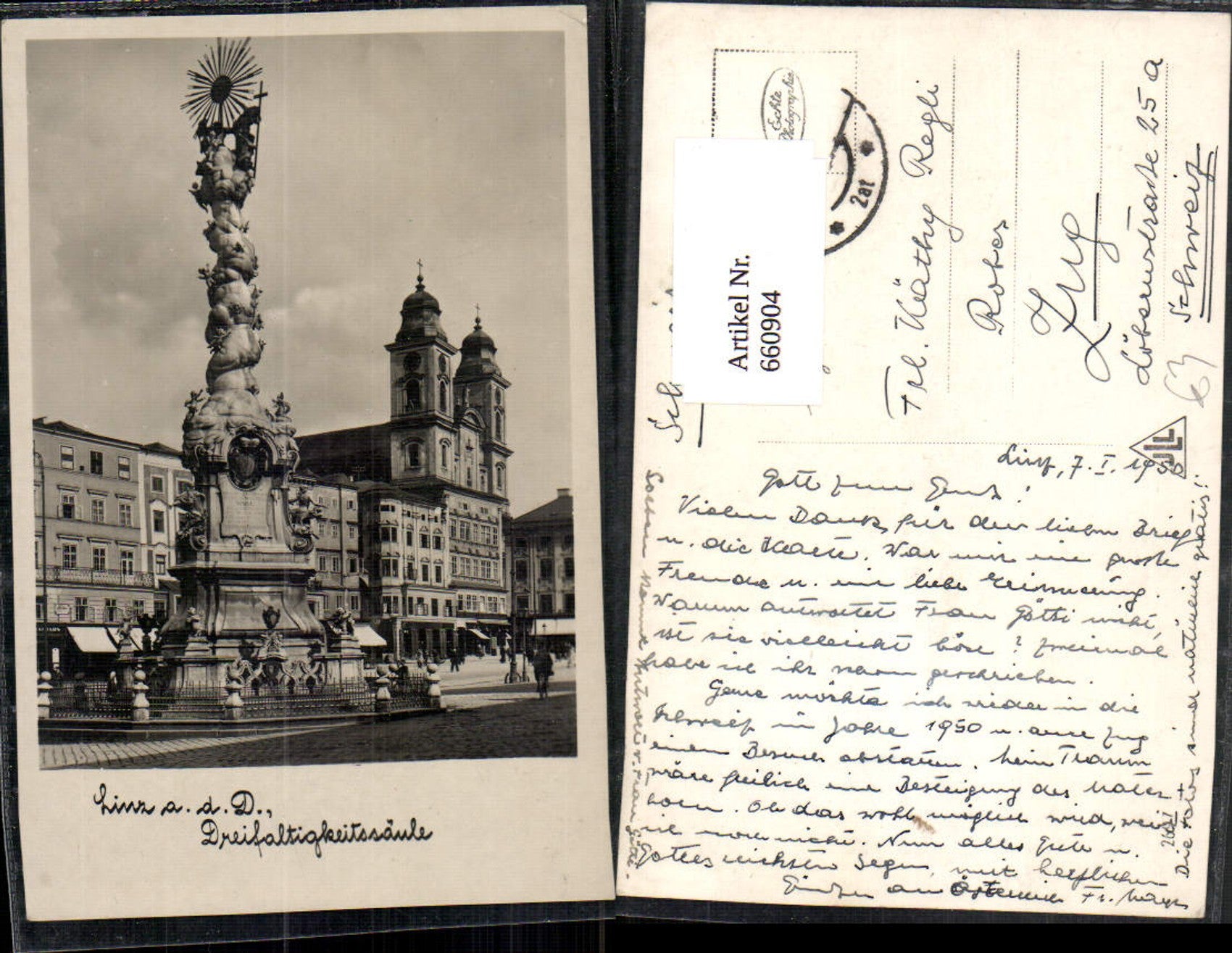660904,Foto Ak Linz a. d. Donau Dreifaltigkeitssäule