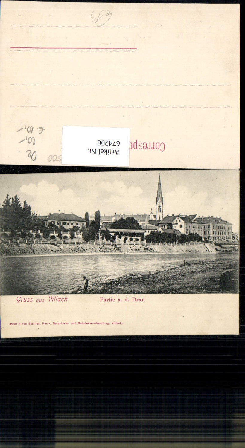 674206,Gruss aus Villach Partie an d. Drau 1900