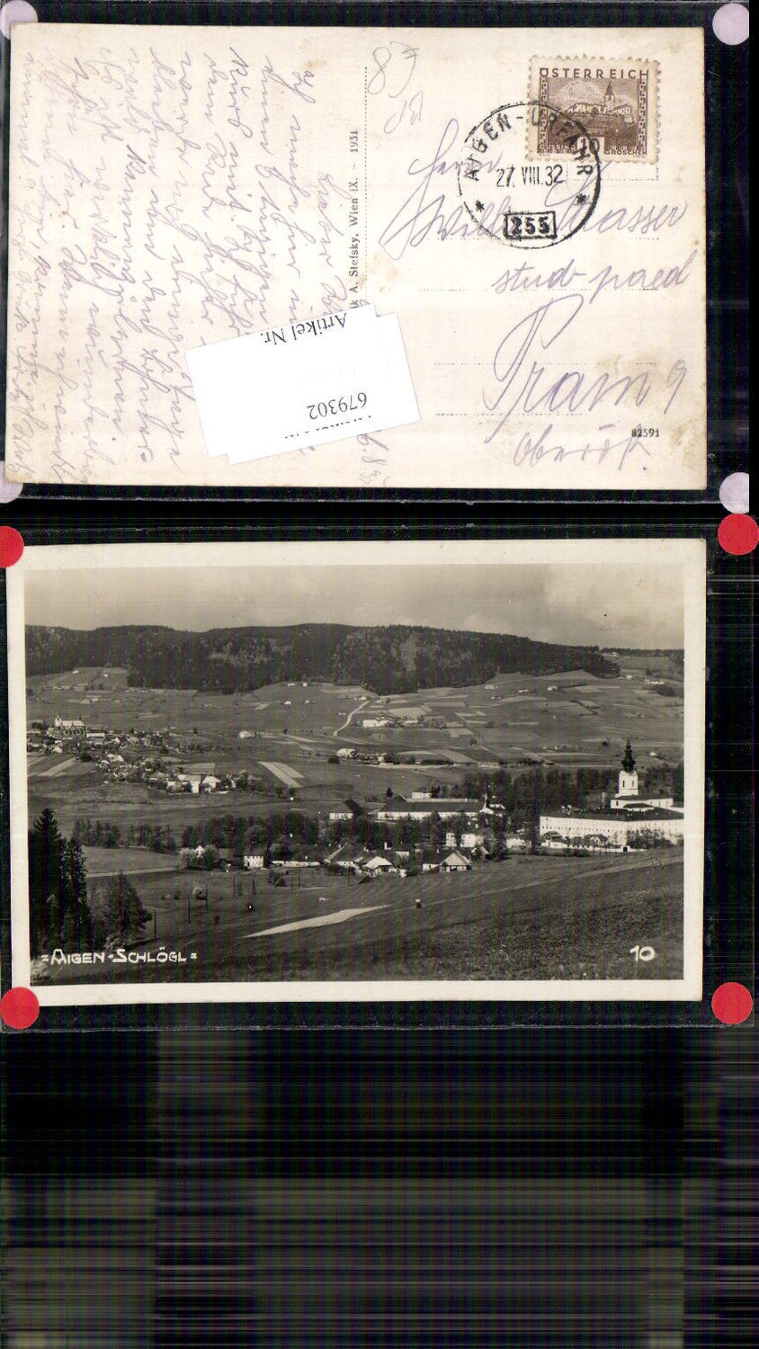 679302 Aigen Schlägl Bahnpost Aigen Urfahr Zug 255 n. Pram