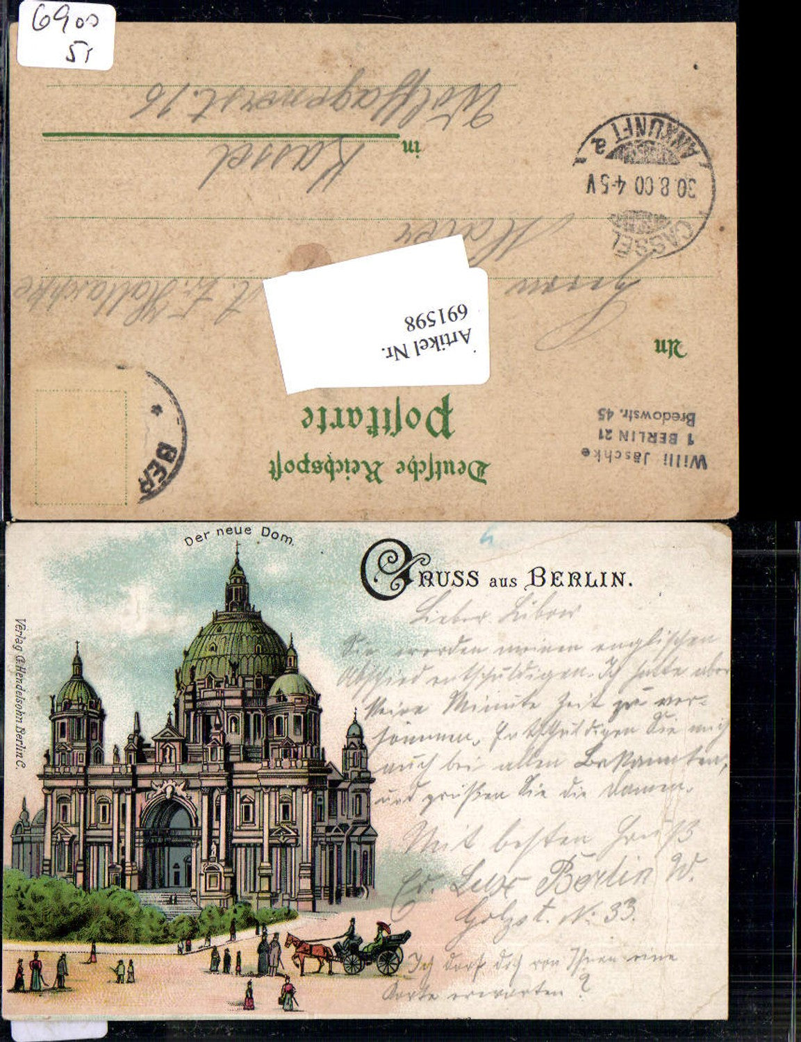 691598 tolle Lithographie Berlin Der neue Dom Kutsche pub Hendelsohn