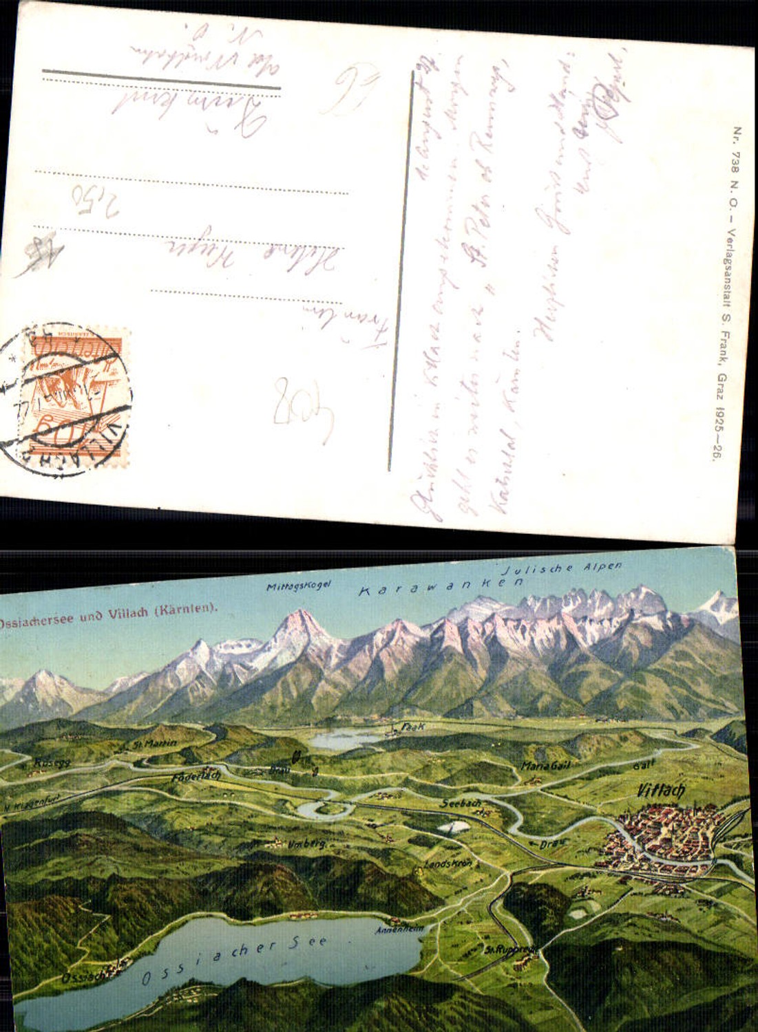 701187 Eugen Felle unsig. Vogelschau Villach Seebach Faak Föderlach St. Ruprecht Ossiach