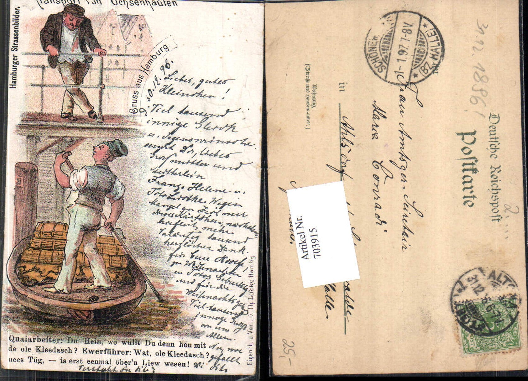703915 Lithographie Hamburger Strassenbilder Typen Hamburg Humor Scherzkarte Scherz