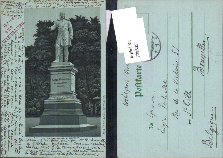 728805 Mond Lithographie Gruss aus Wiesbaden Kaiser Wilhelm I Denkmal