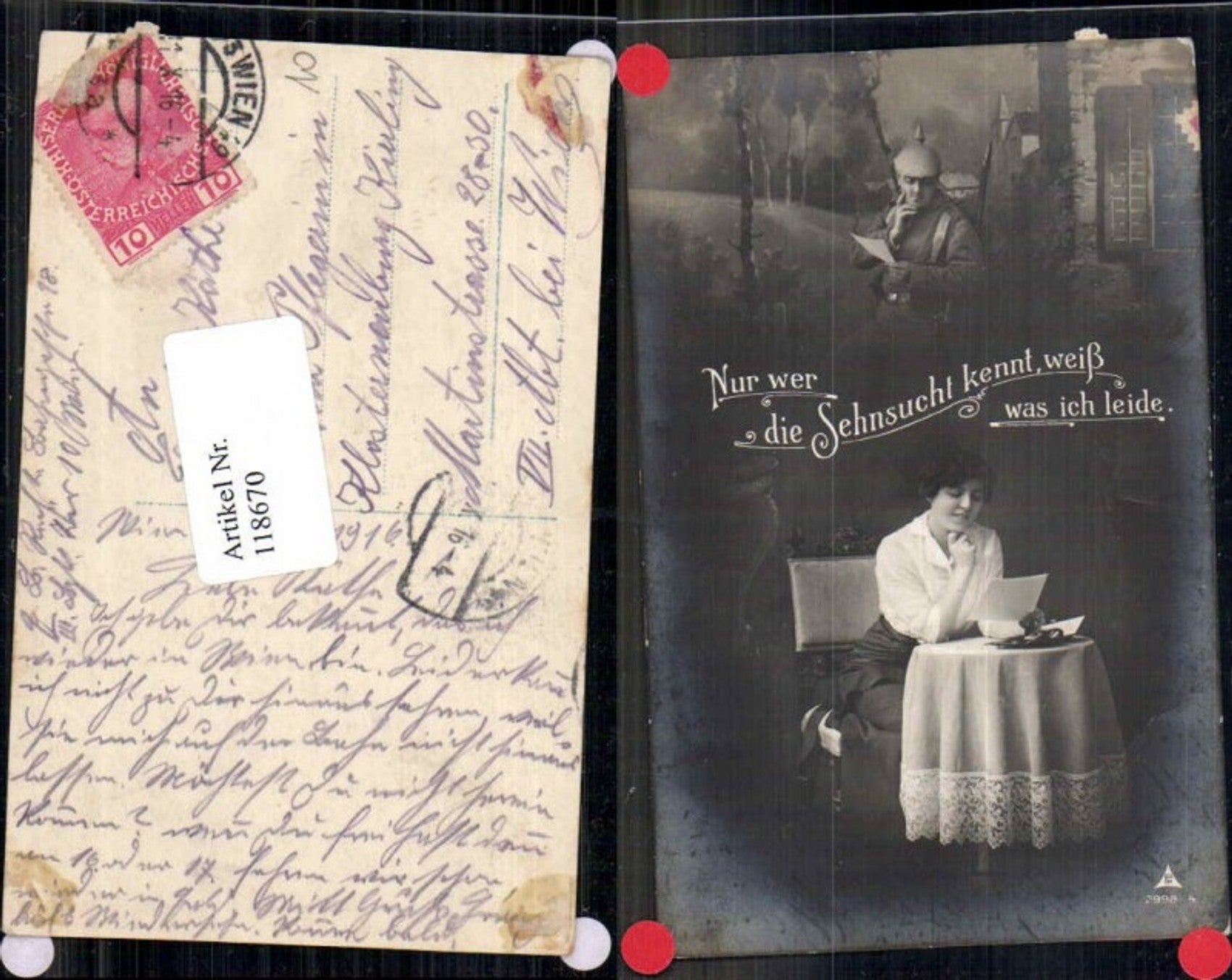 118670,Frau Liest Brief Soldat Pickelhaube im Feld
