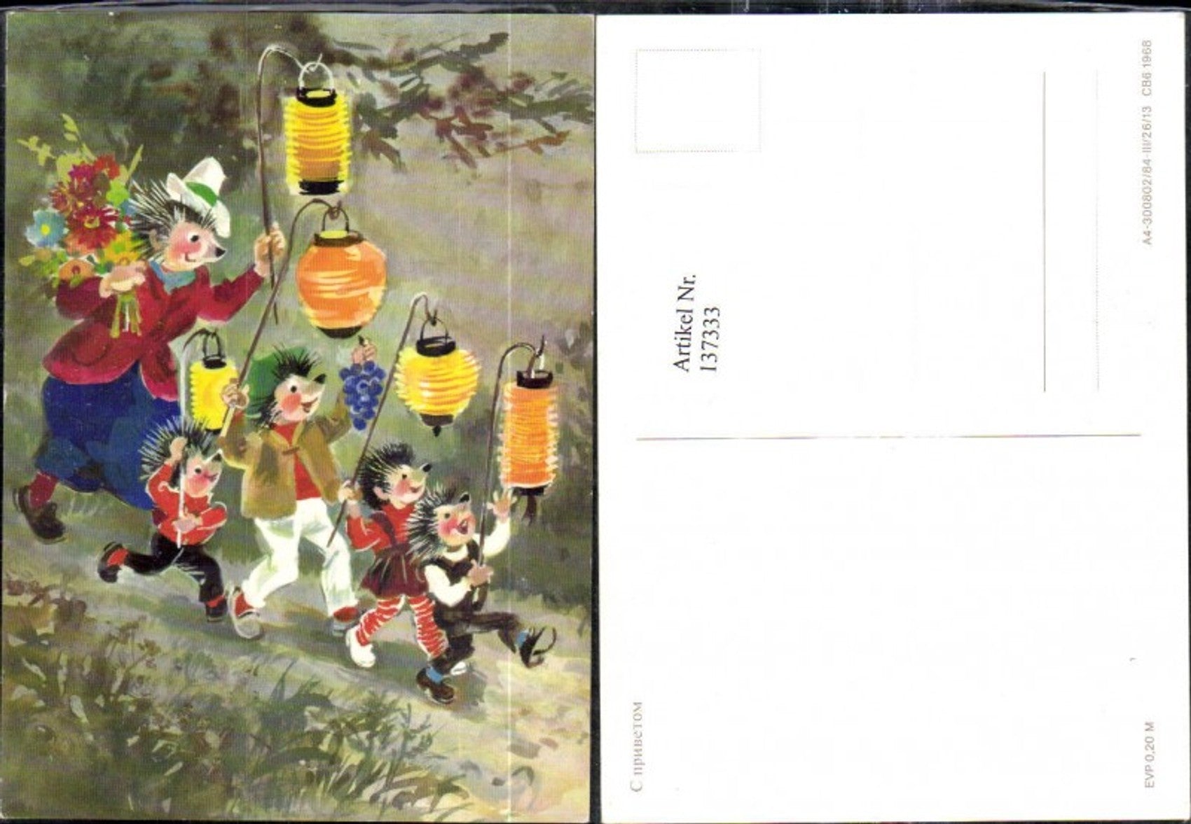 137333,Igel Frau m. Kinder Laternen Blumen Strauß