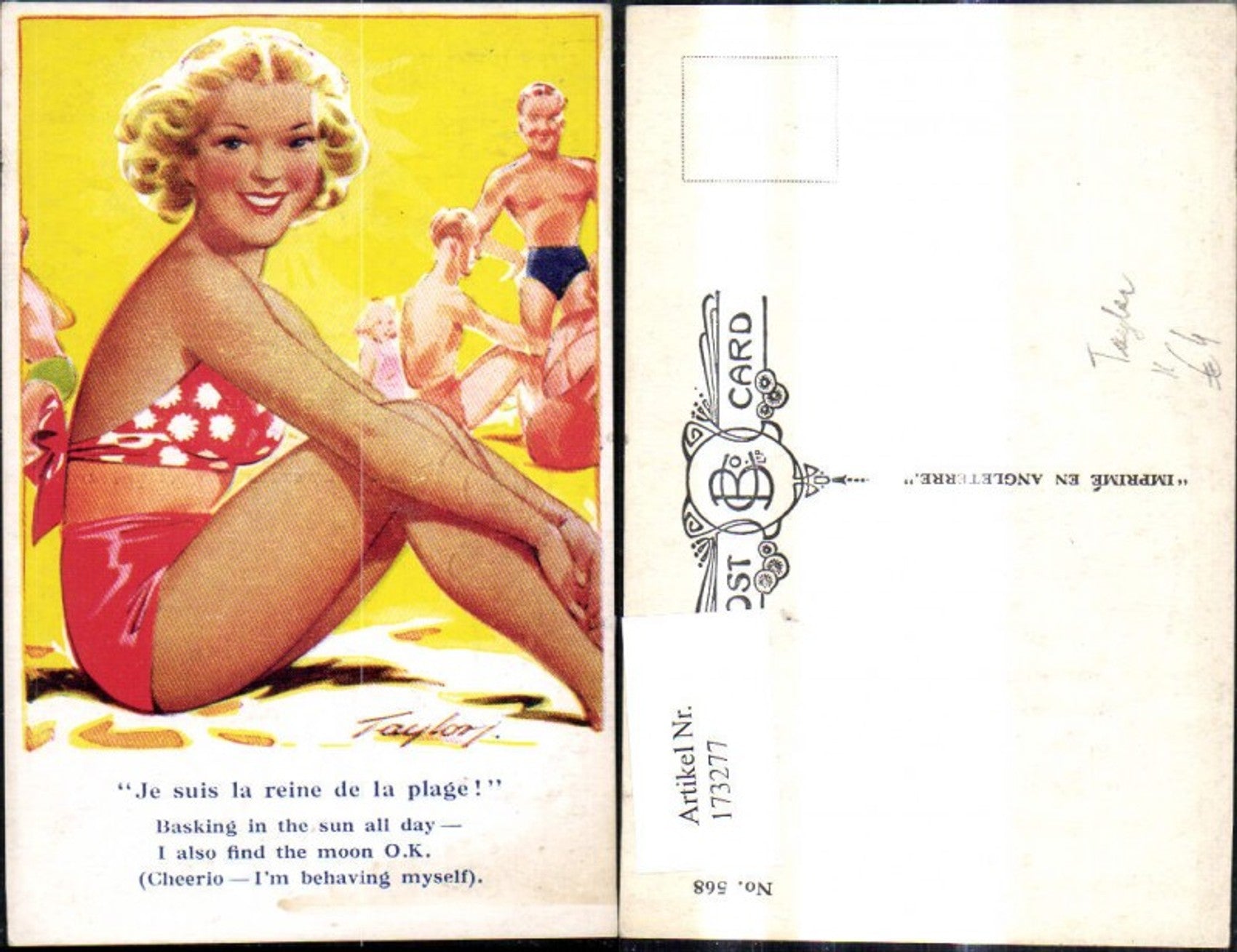 173277,Künstler Ak Taylor Scherz Humor Frau a. Strand Spruch Text