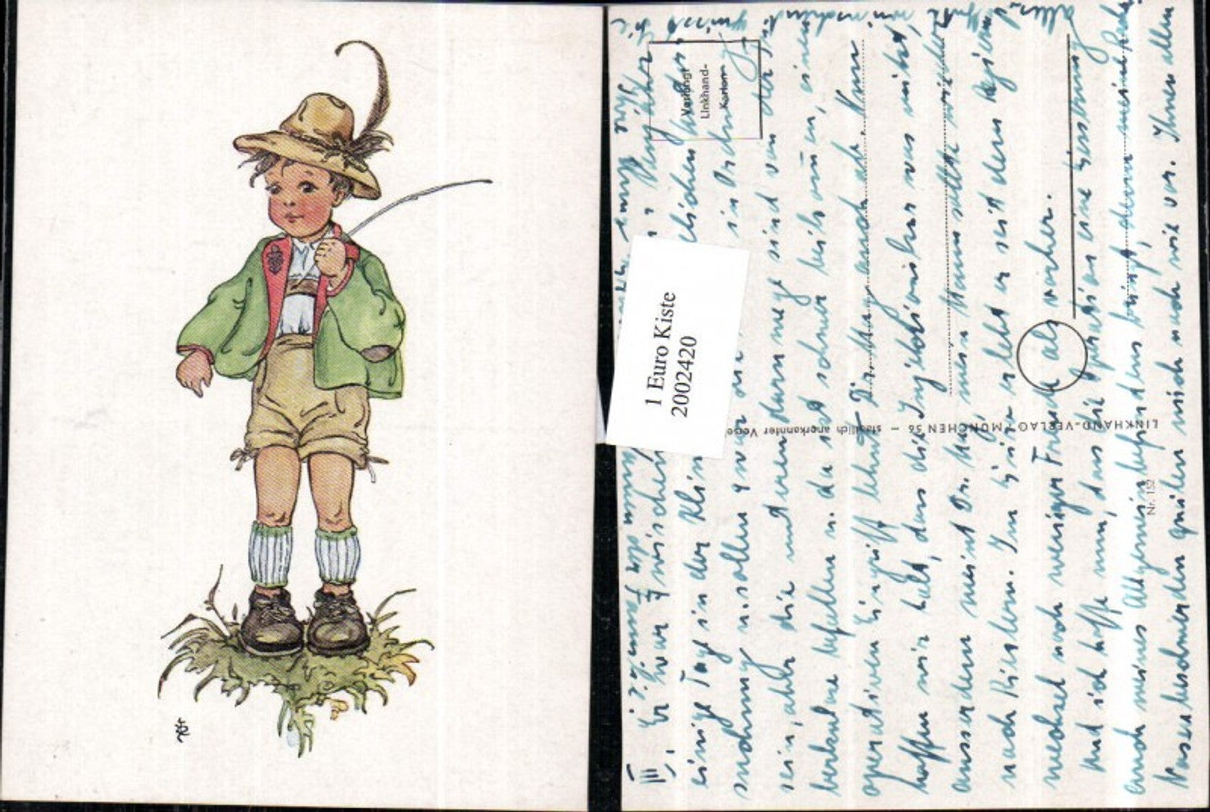 2002420,Künstler AK Junge in Tracht Lederhose Hut