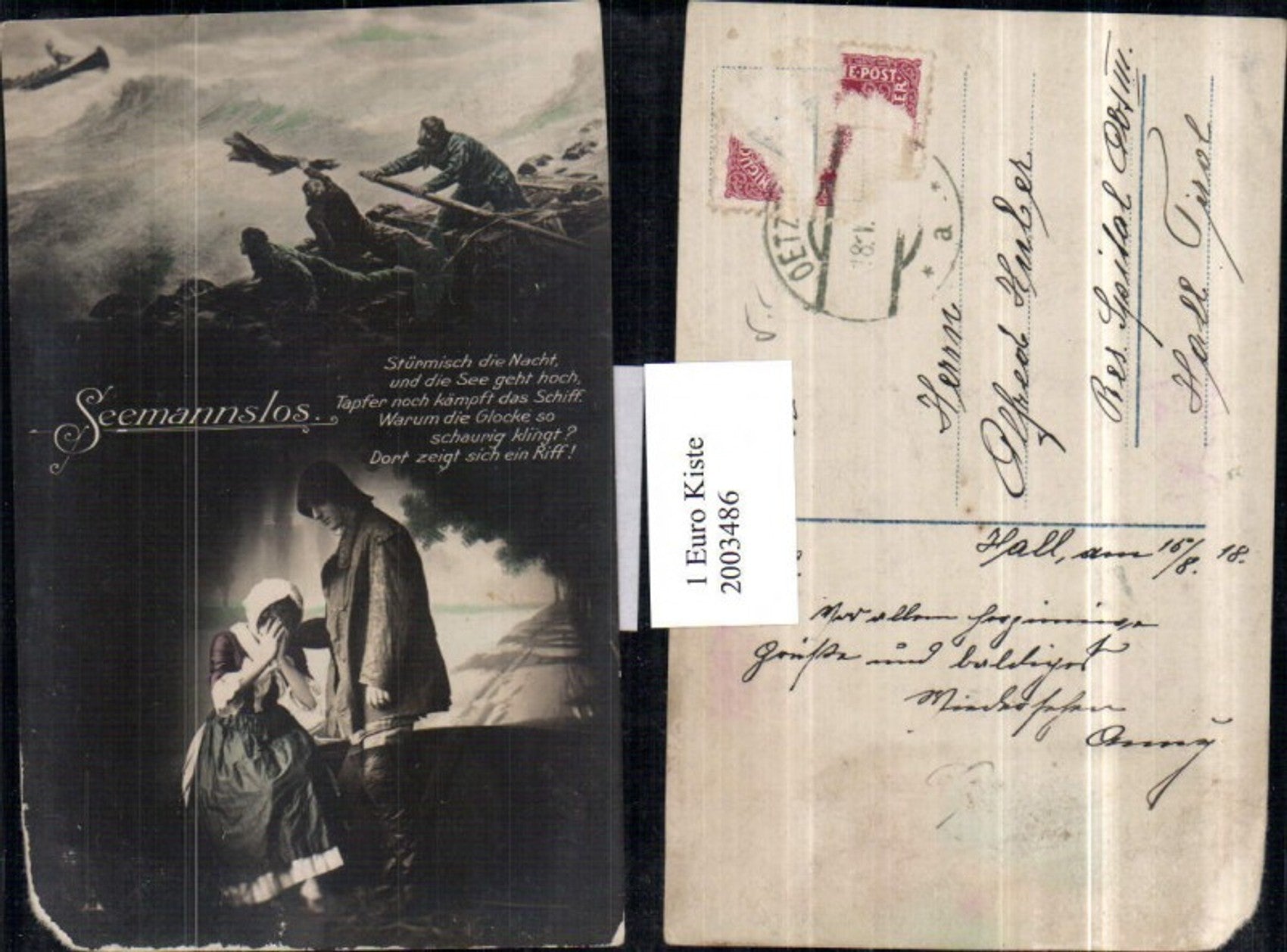 2003486,Seemannslos Frau weint Männer Ruderboot Sturm Wellen Mehrbildkarte