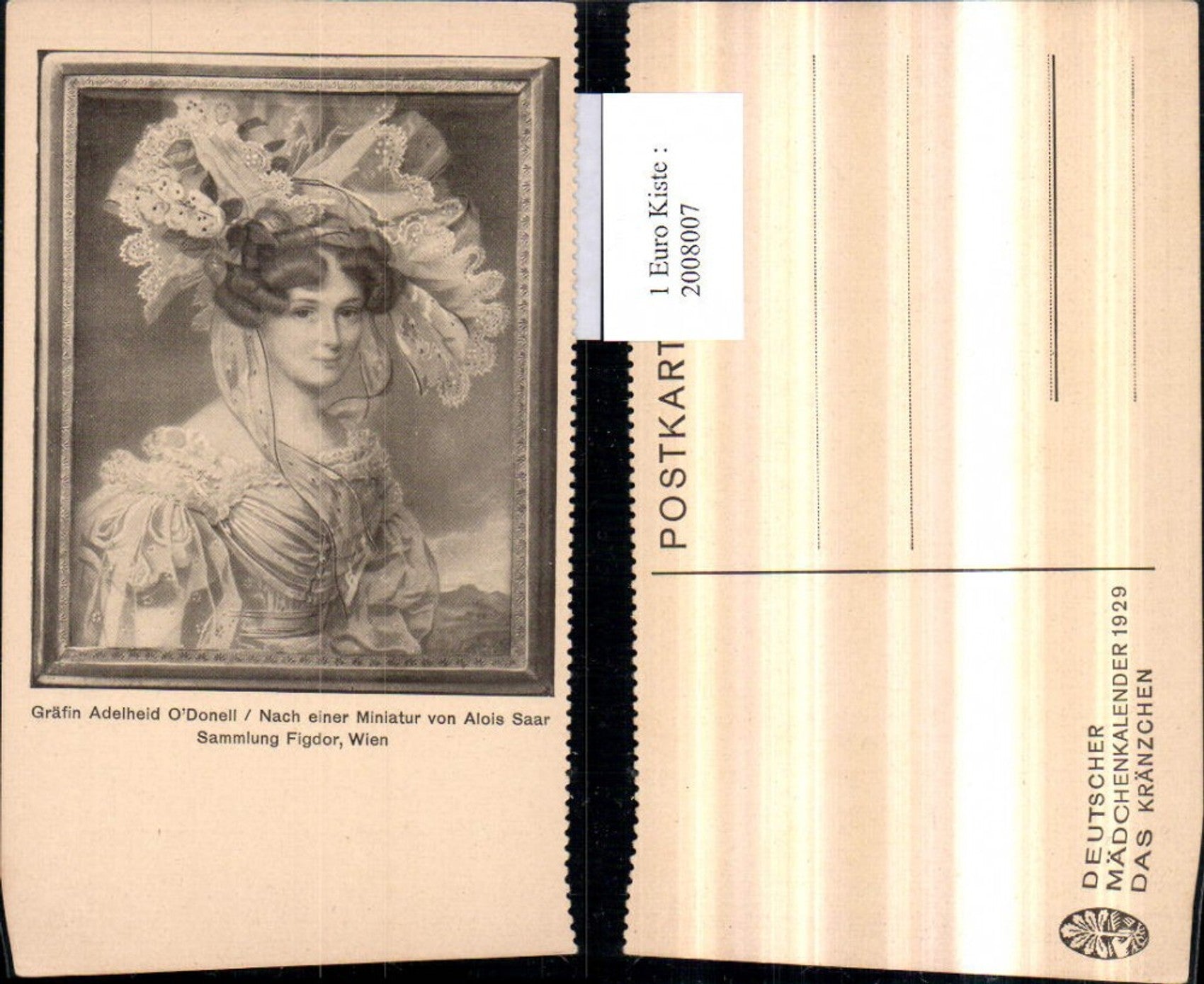 2008007,Künstler AK Alois Saar Gräfin Adelheid O'Donell Frau m. Hut Hutmode Portrait
