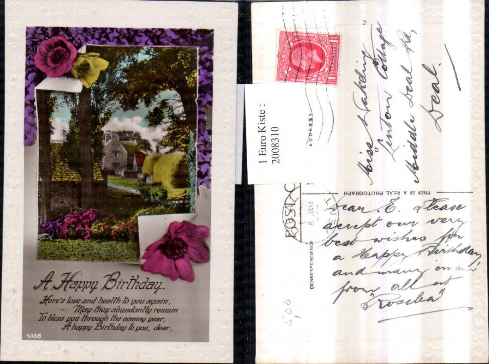 2008310,Präge Passeparout Birthday Geburtstag Häuser Blumen Spruch Text