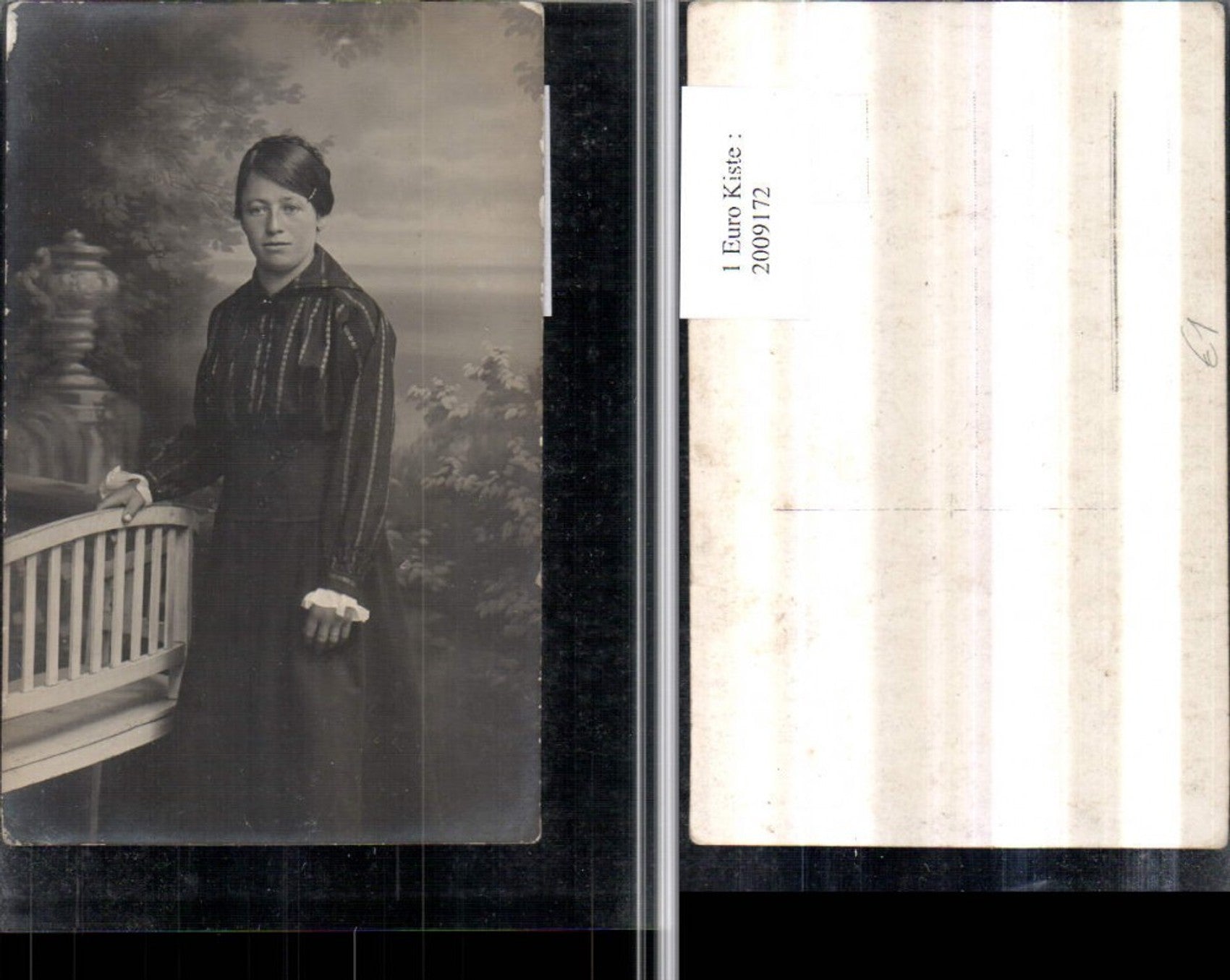 2009172,Foto AK Frau m. Bluse Rock Portrait Sitzbank Bank