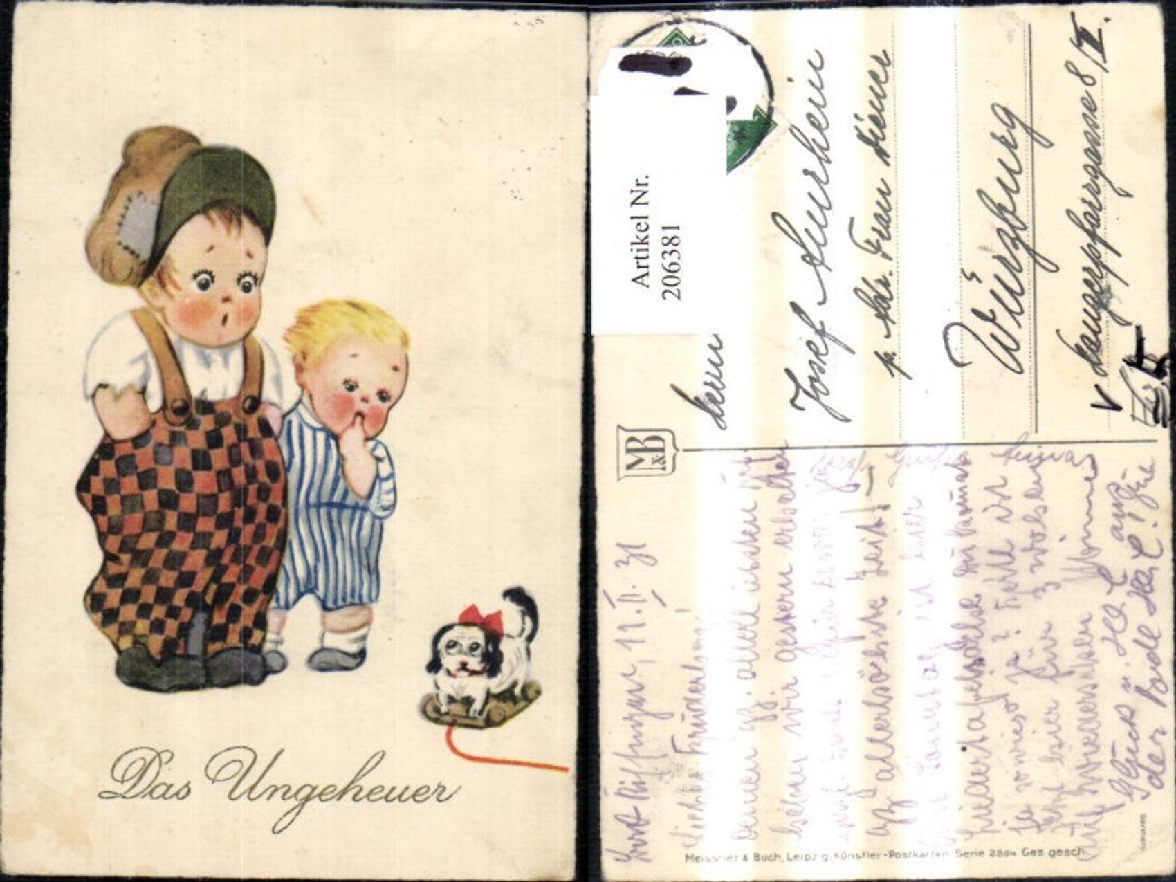 206381,Künstler Ak Meissner & Buch 2864 Kinder m. Spielzeug Hund Das Ungeheuer