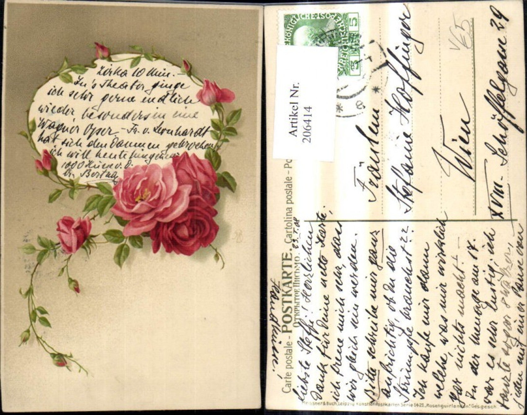 206414,Künstler Ak Meissner & Buch 1421 Rosengirlanden Rosen