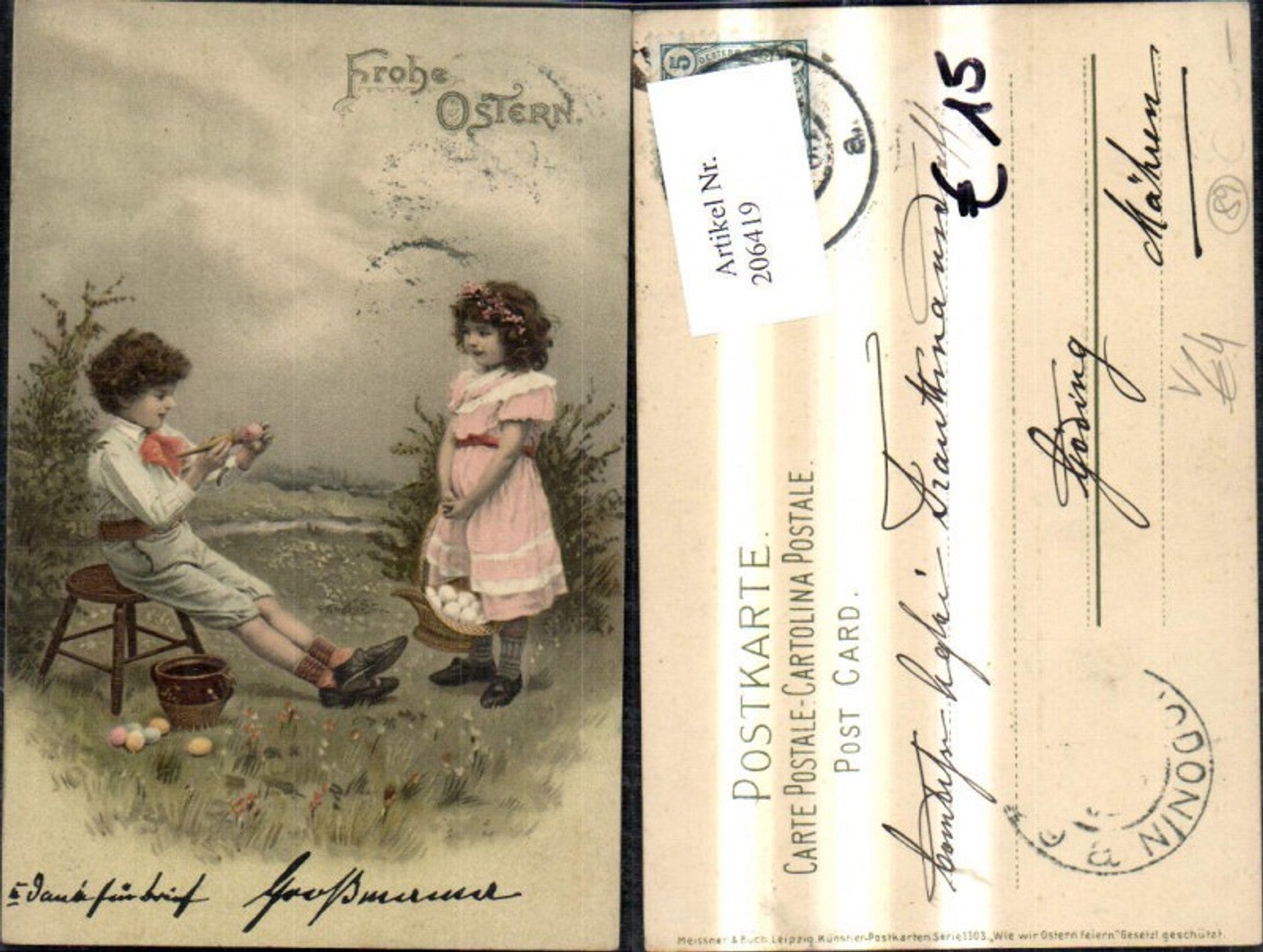 206419,Künstler Ak Meissner & Buch 1303 Wie wir Ostern feiern Kinder Ostereier Korb Eier