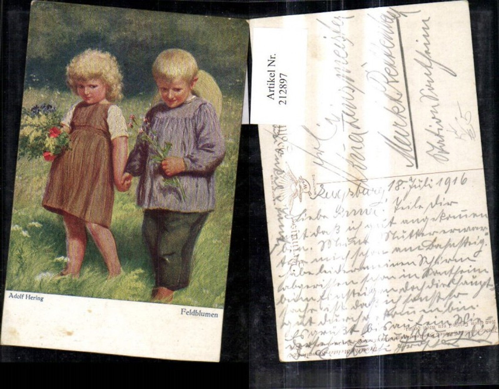 212897,Primus Ak 3016 Adolf Hering Feldblumen Kinder Hand i. Hand m. Blumen a. Wiese