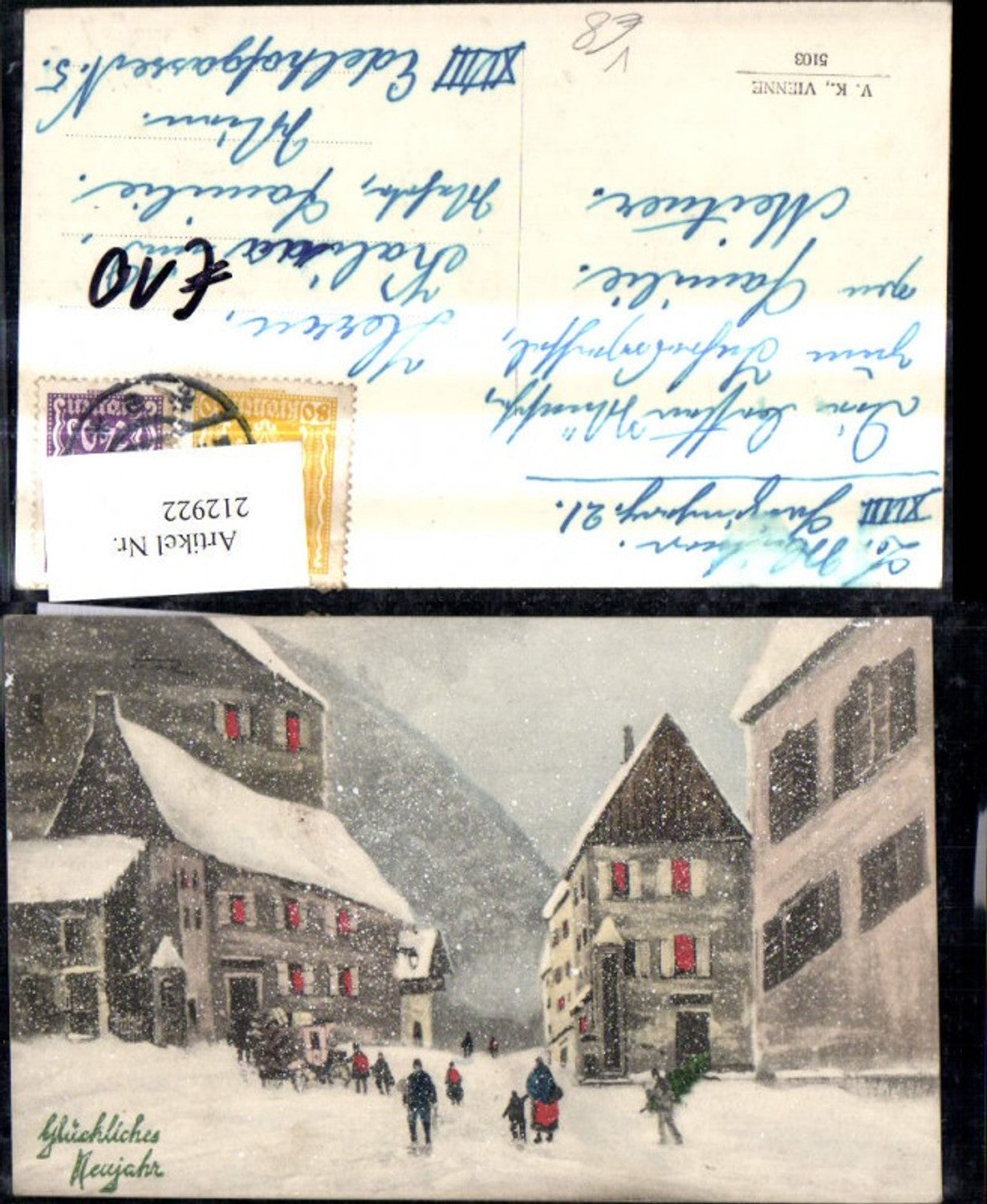 212922,V.K. Vienne 5103 Glückliches Neujahr Winterdorf Kutsche Personen