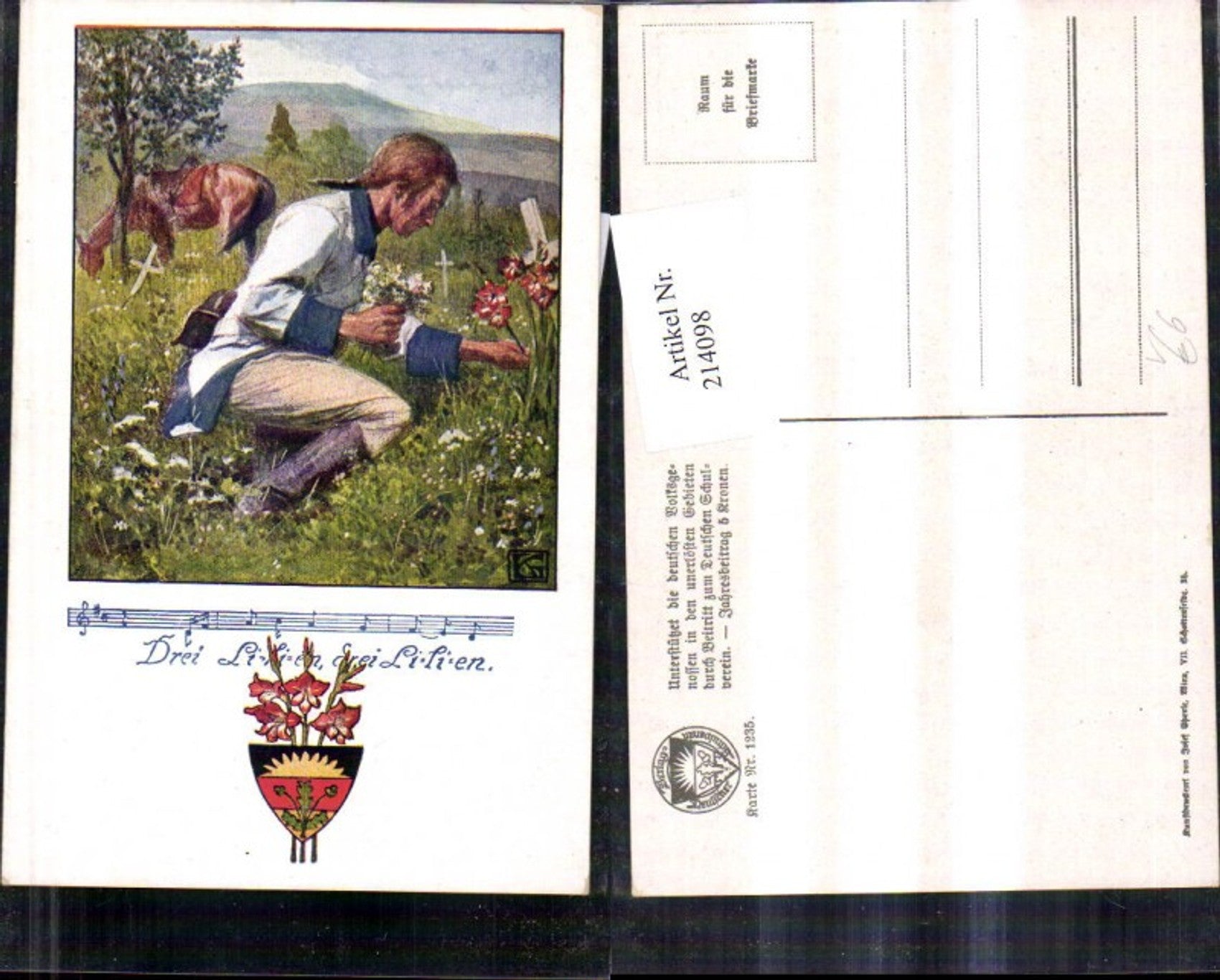 214098,Deutscher Schulverein 1235 Mann b. Blumen pflücken Lilien Pferd