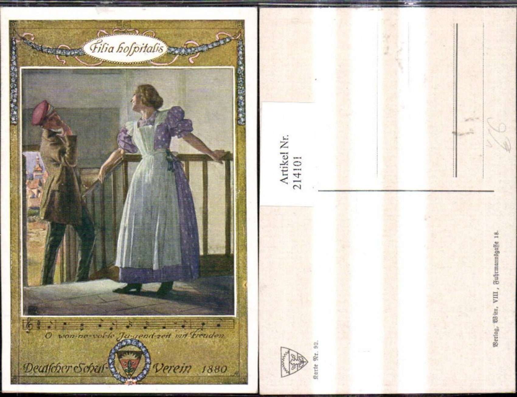 214101,Deutscher Schulverein 92 Mann in Uniform Kuss an eine Frau m. Kleid