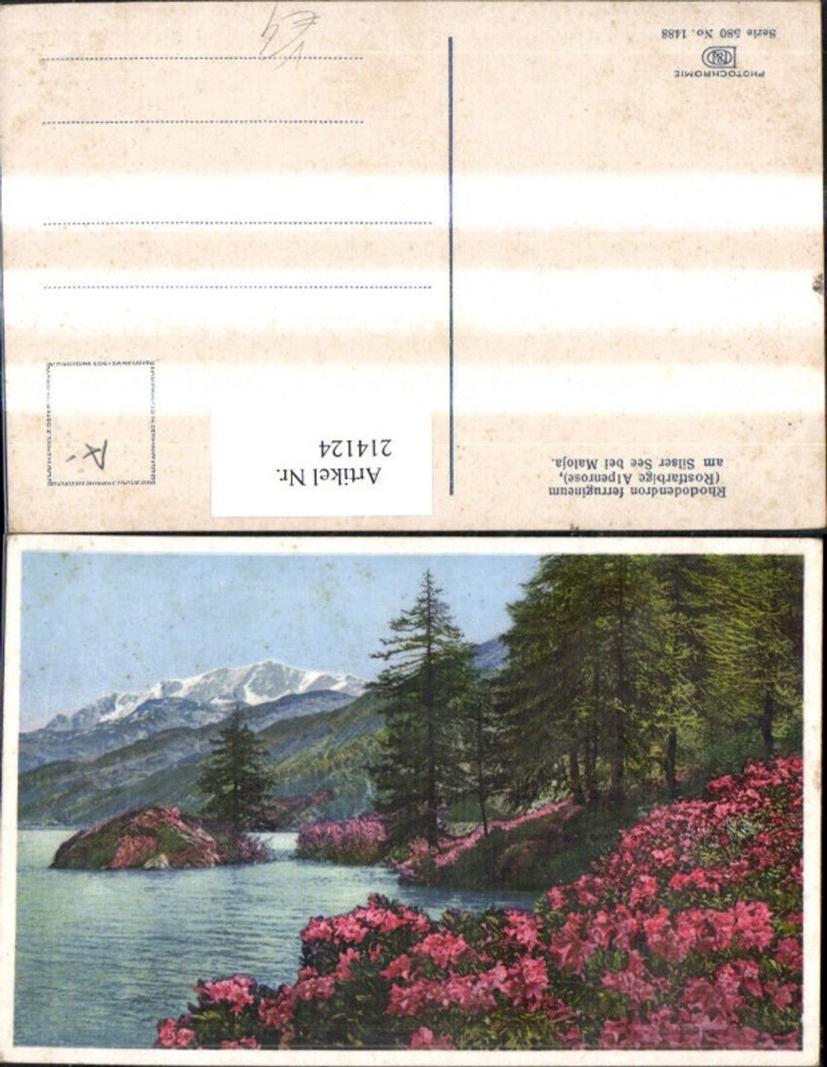 214124,Photochromie 580/1477 Rostfarbige Alpenrose am Silser See b. Maloja