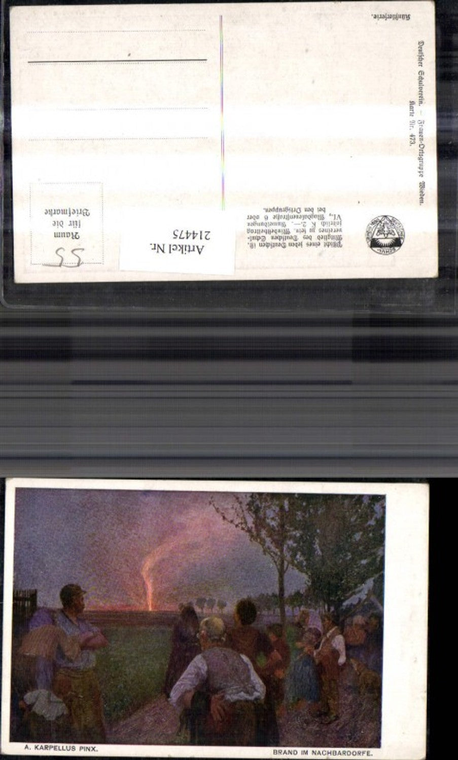 214475,Deutscher Schulverein 473 Frauen Ortsgruppe Wieden Künstler Ak A. Karpellus Brand i. Nachbardorfe