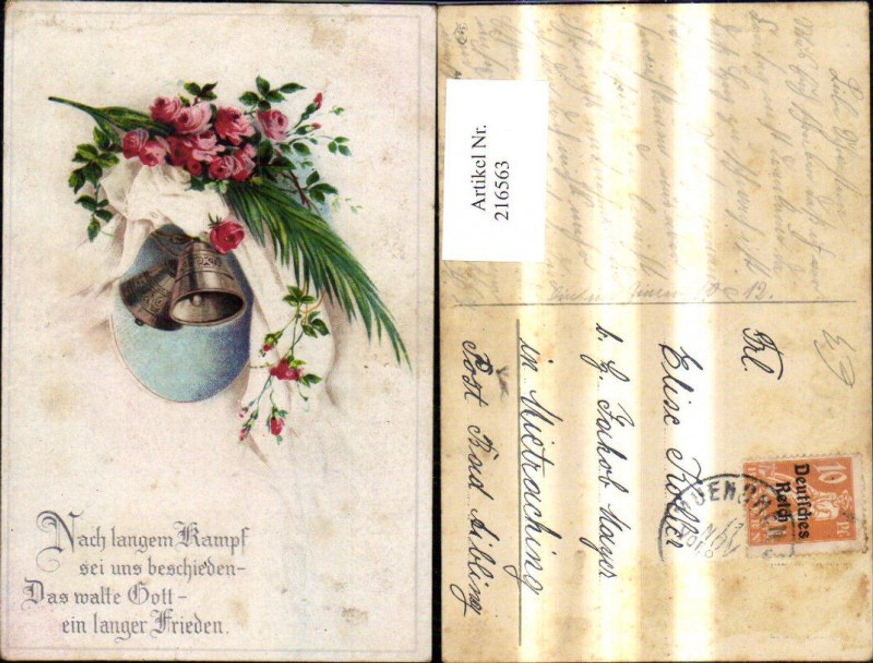 216563,WW1 Glocken Blumen Rosen Palmenzweig Spruch Text Patriotik Propaganda