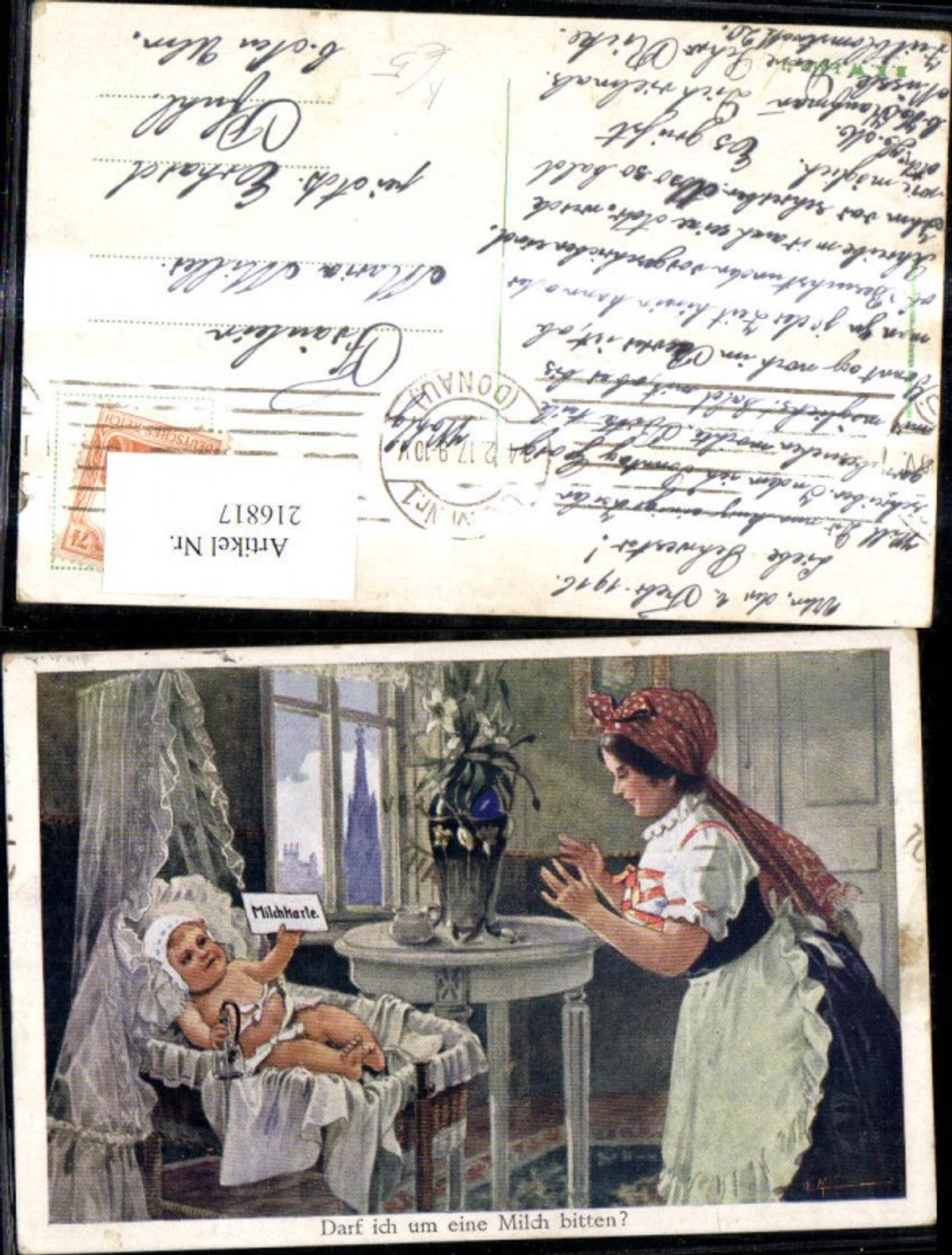 216817,Künstler Ak Baby Wiege Schild Milchkarte Darf ich um Milch bitten Scherz Humor