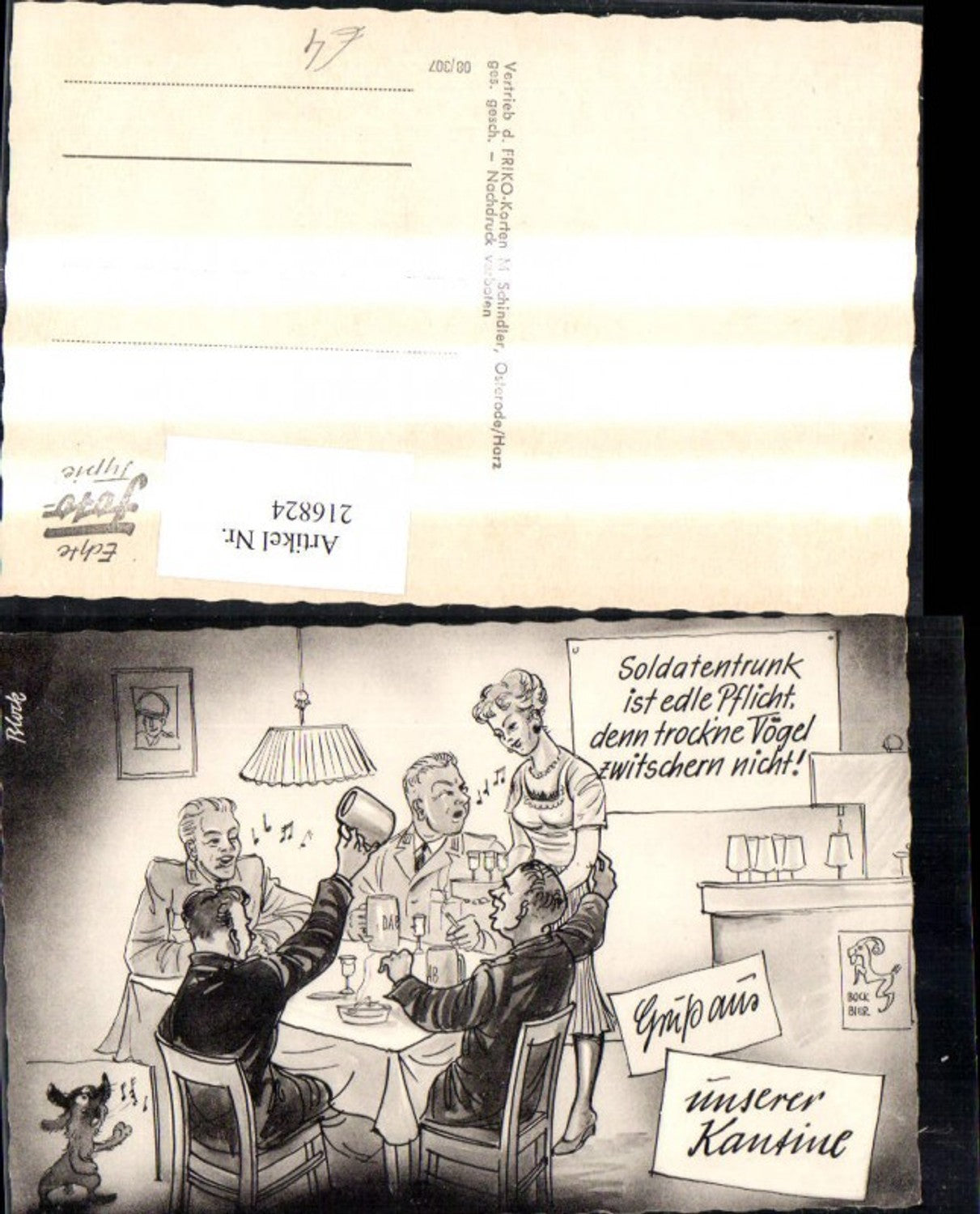216824,Künstler Ak Block Soldatentrunk Soldaten Bier Frau Musik Spruch Text Gruß a. Kantine Scherz Humor