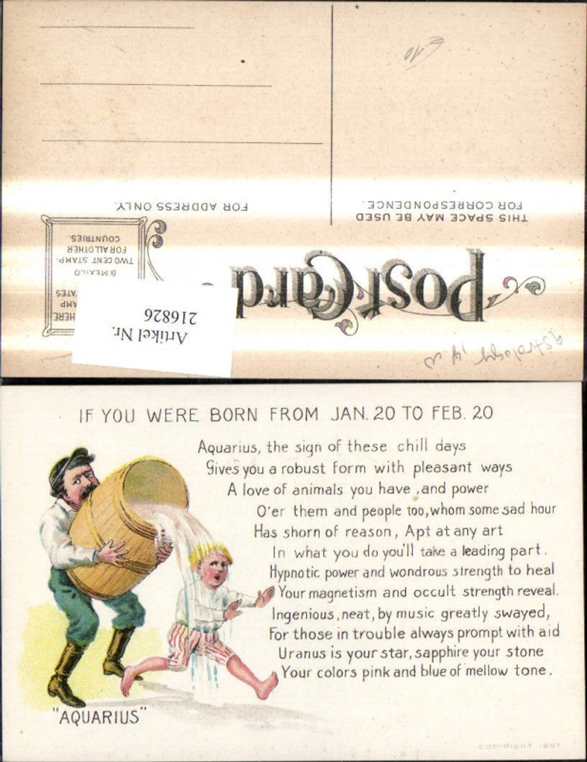 216826,Künstler Ak Aquarius Mann übergießt Jungen If you were born from Jan. 20 to Feb. 20 Sternzeichen Scherz Humor