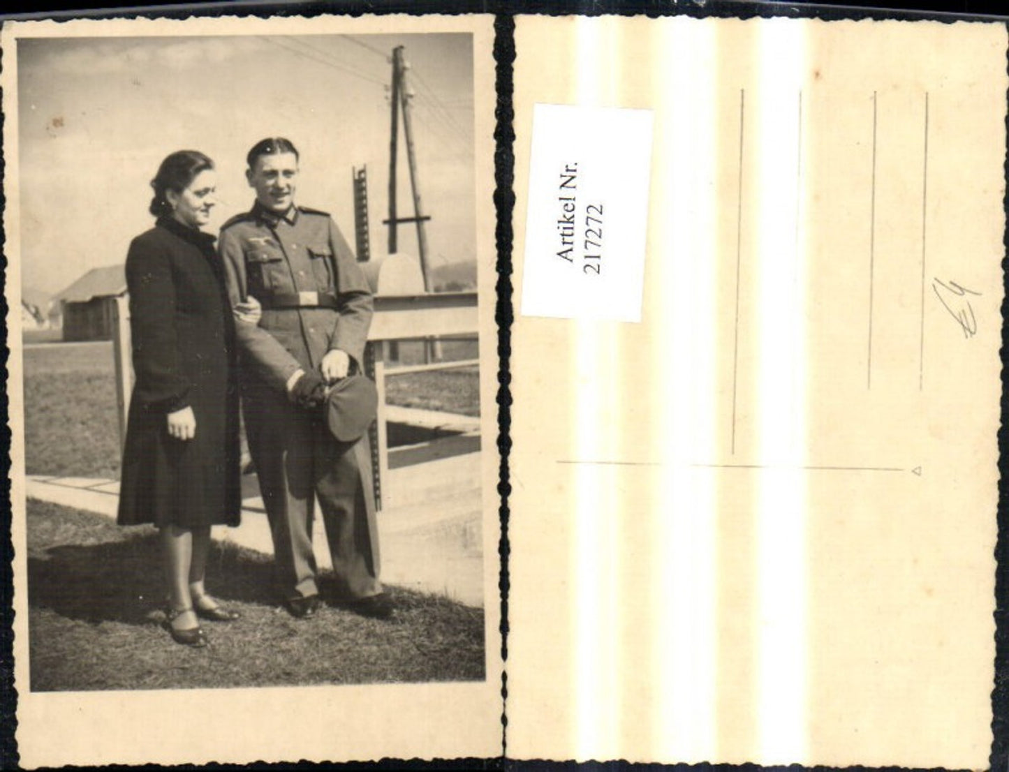 217272,WW2 tolle Foto Ak Wehrmacht Soldat Uniform m. Frau Gürtel Gürtelschnalle