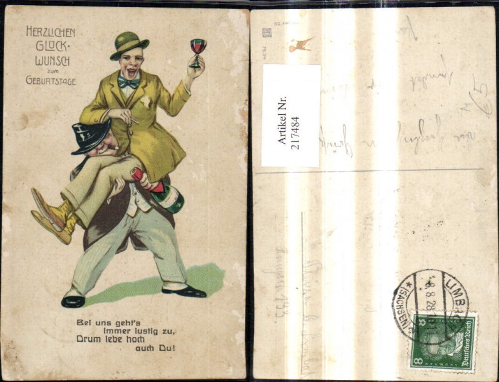 217484,Künstler Ak Glückwunsch Geburtstag Trunkenbolde Wein Glas Spruch Text Humor Scherz