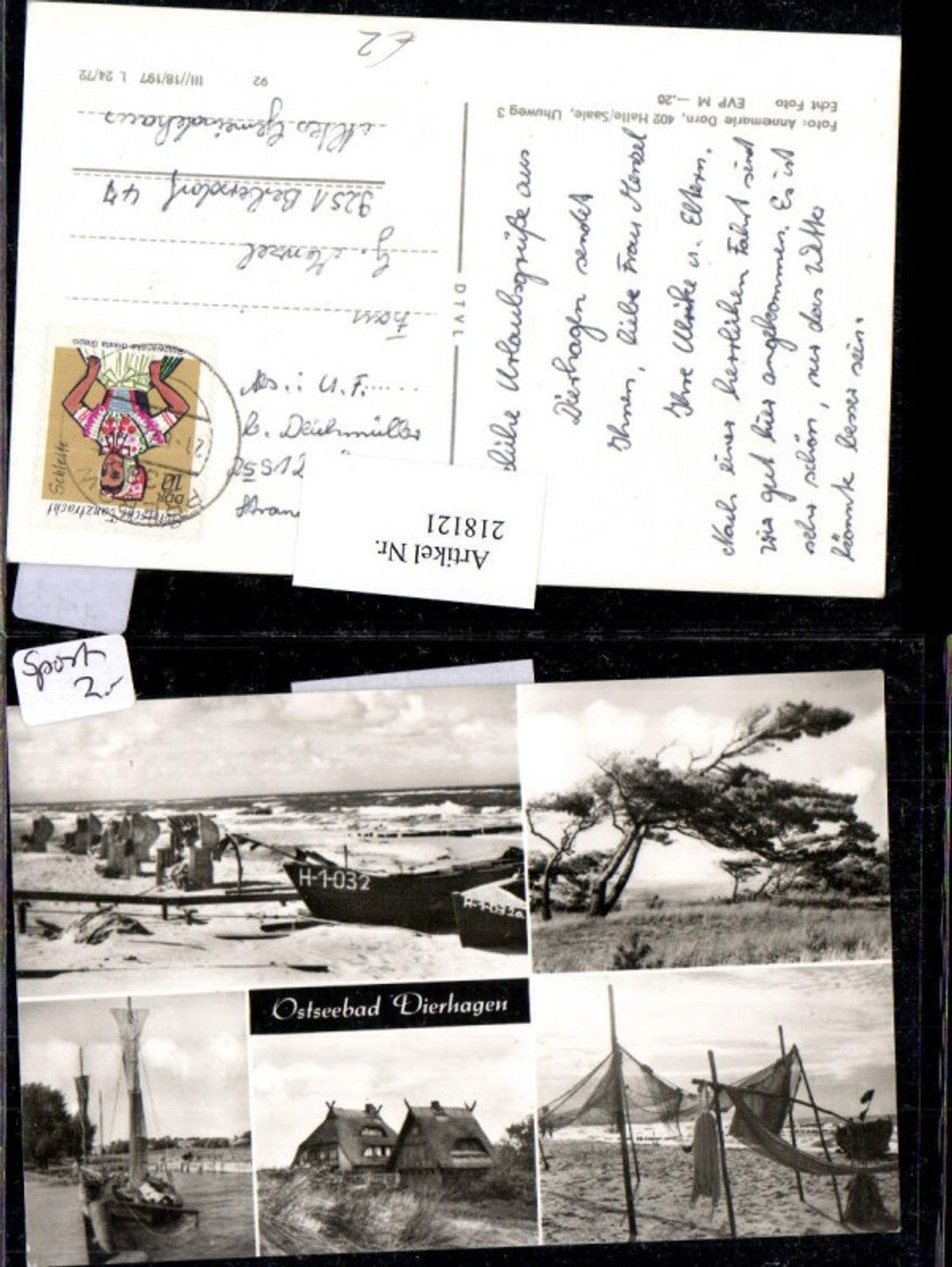 218121,Ostseebad Dierhagen Partie Strandkörbe Boot Hausansicht Bäume Mehrbildkarte