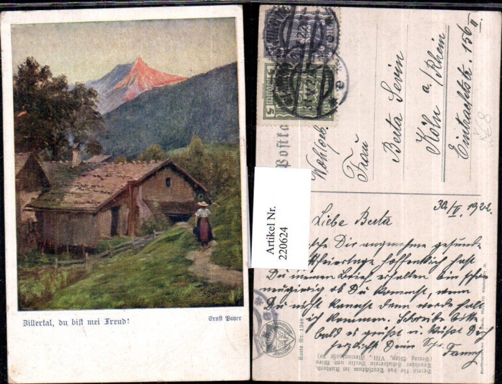 220624,Deutscher Schulverein 1348 Künstler Ernst Baher Zillertal Partie Berghütte