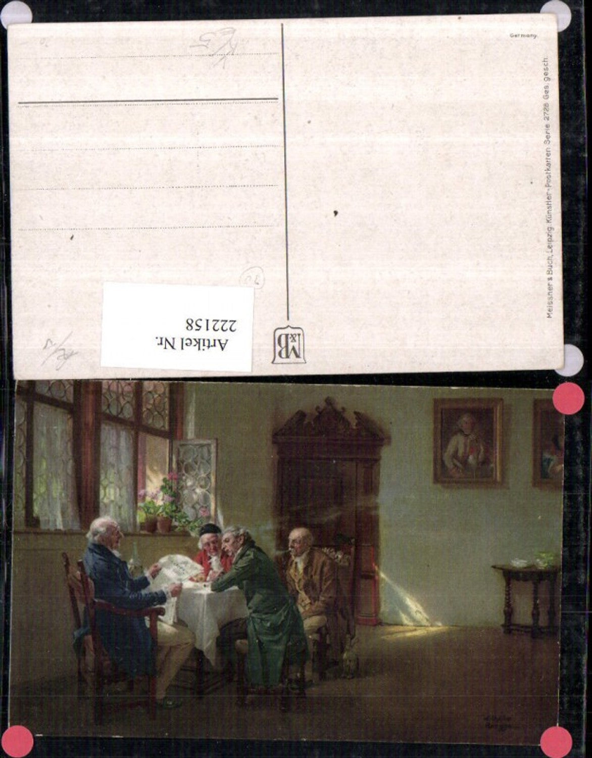 222158,Künstler AK Wilhelm Roegge Meissner & Buch 2728 Männer b. Tisch Pfeife Zeitung