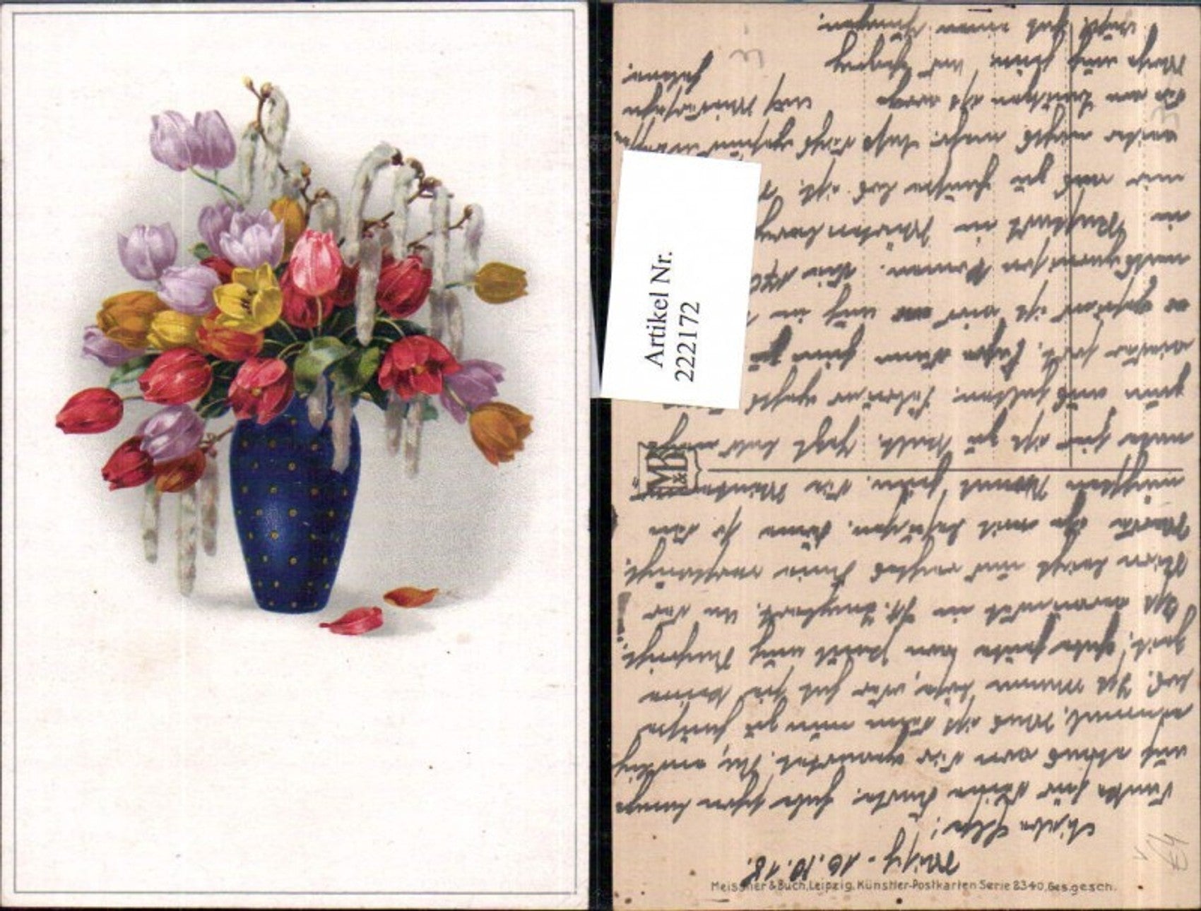 222172,Künstler AK Meissner & Buch 2340 Vase Tulpen Palmzweige